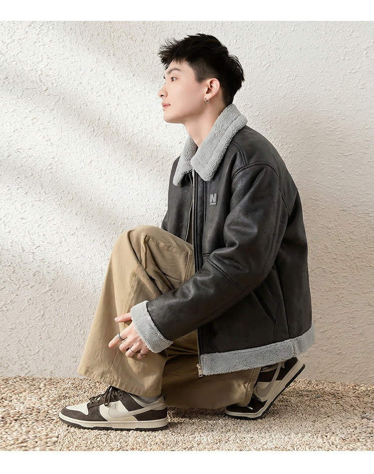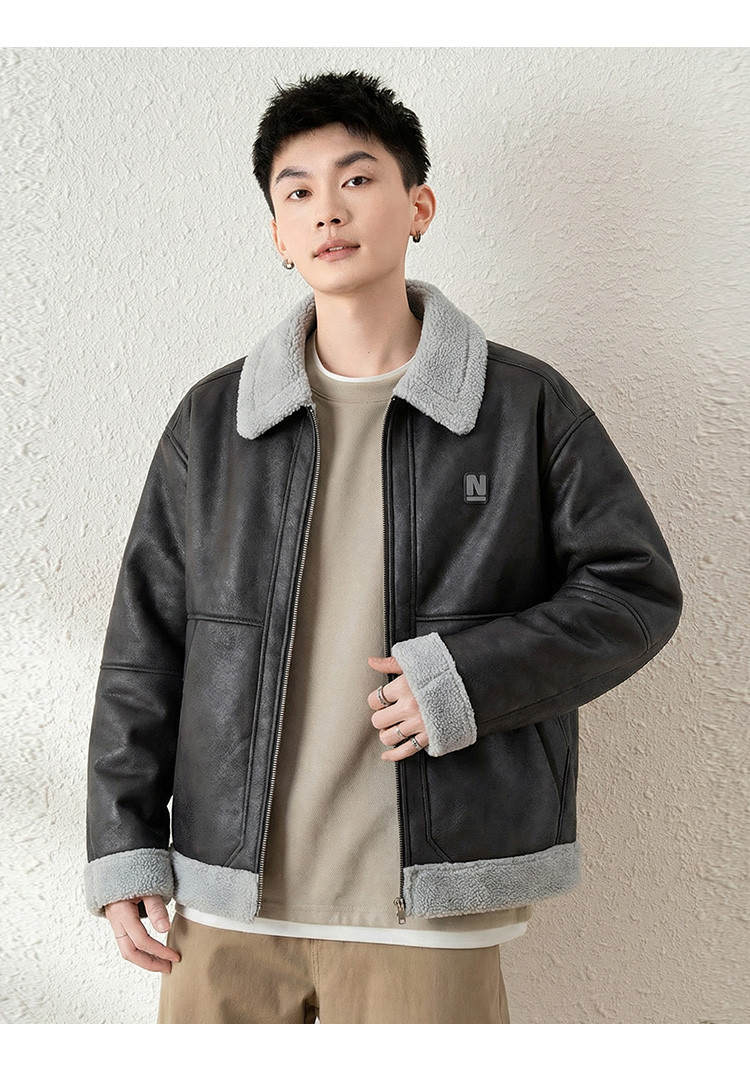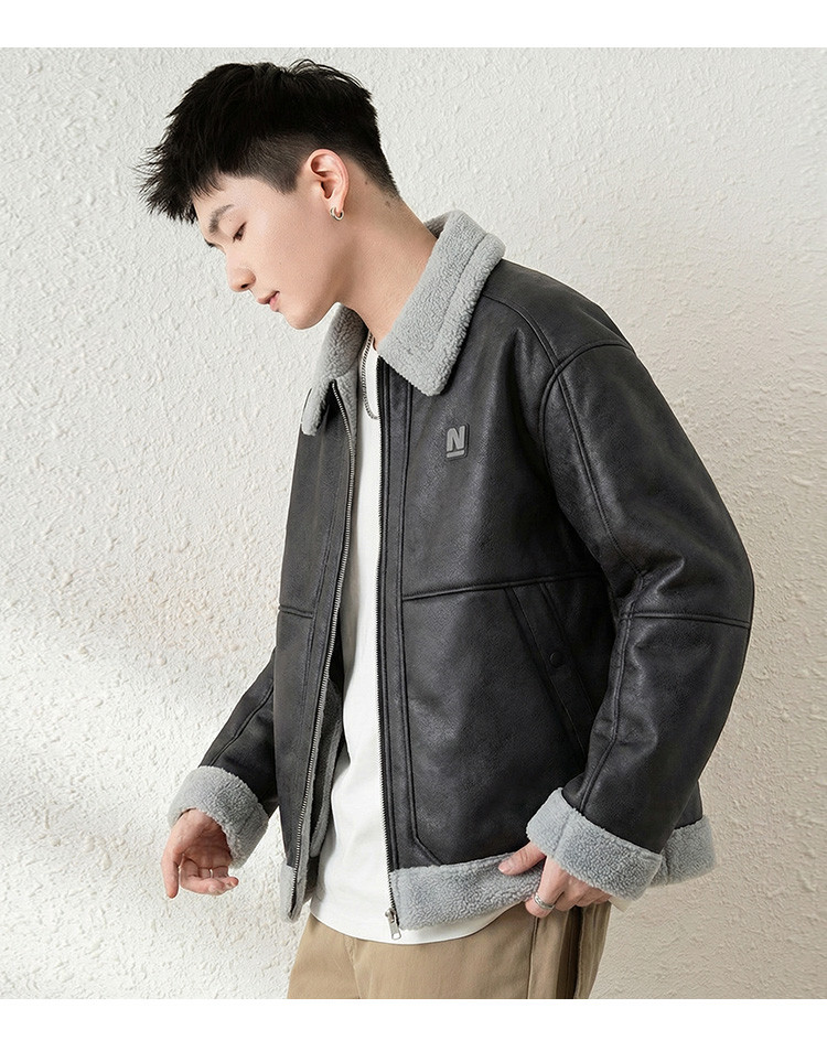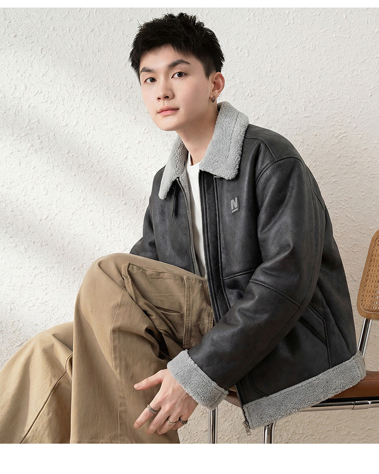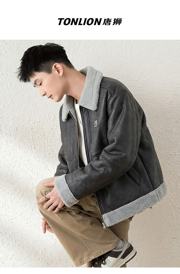 唐狮2026秋冬季情侣仿羔毛领加厚款外套防寒保暖机车风潮流百搭