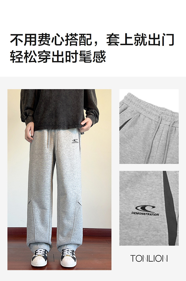 唐狮2026秋冬季直筒休闲长裤男针织拼接设计感宽松简约时尚潮
