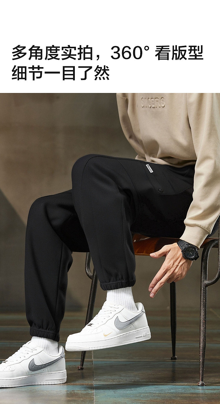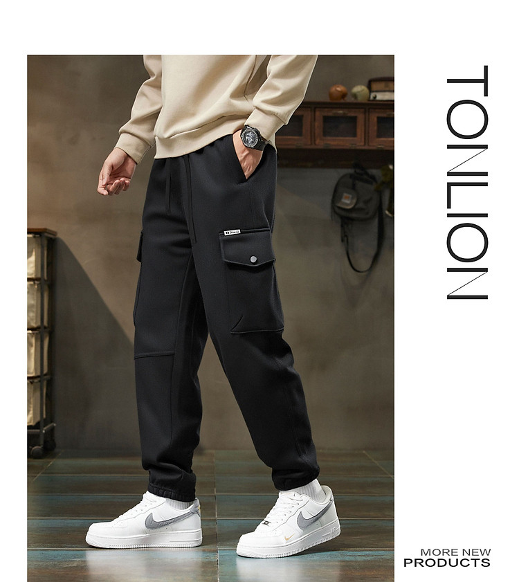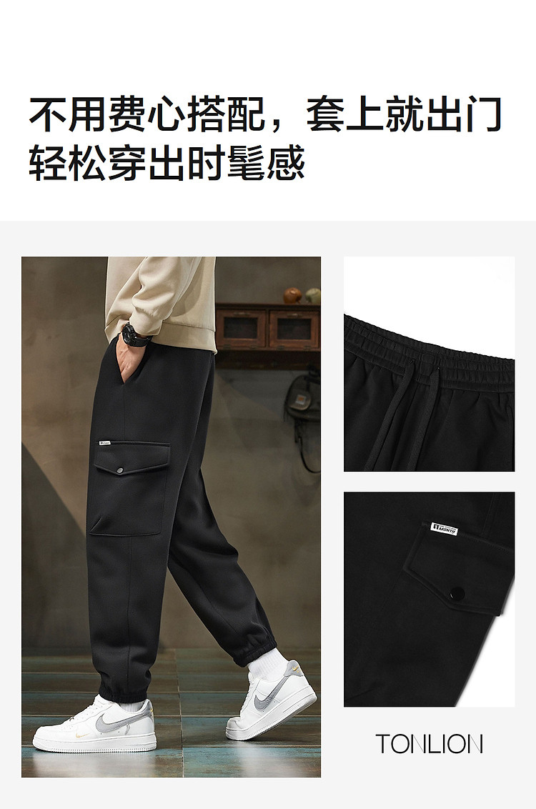 唐狮2025秋季男士休闲长裤束脚裤工装裤宽松黑色百搭时尚潮流男裤
