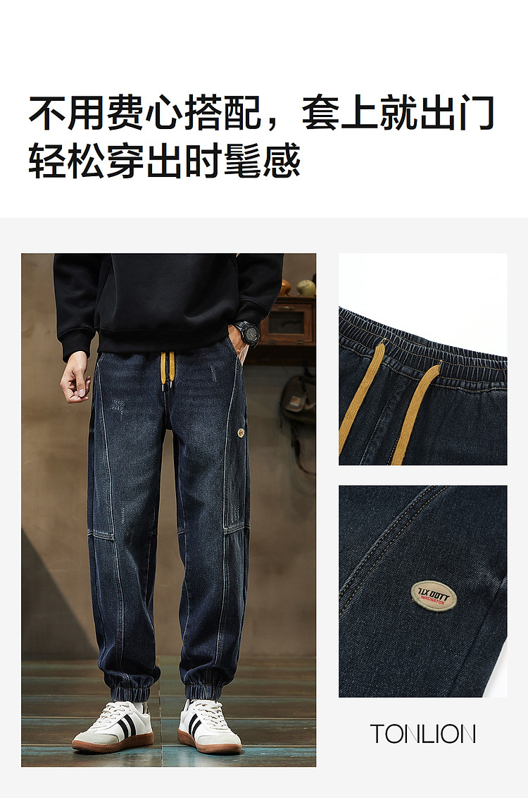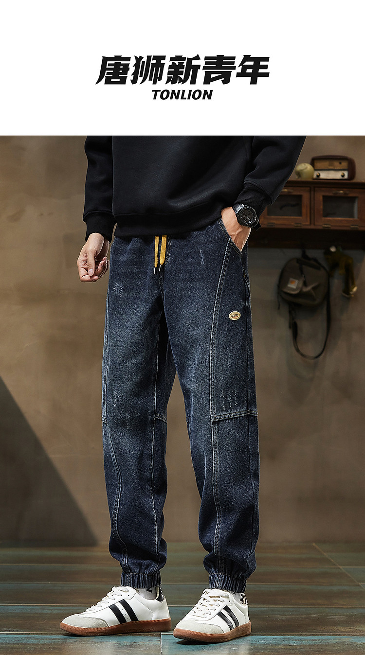 唐狮2026秋冬男束脚牛仔长裤加绒加厚宽松休闲风男裤百搭潮流裤子