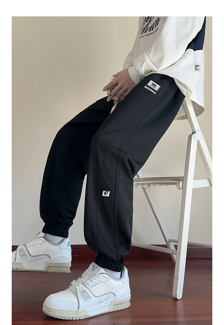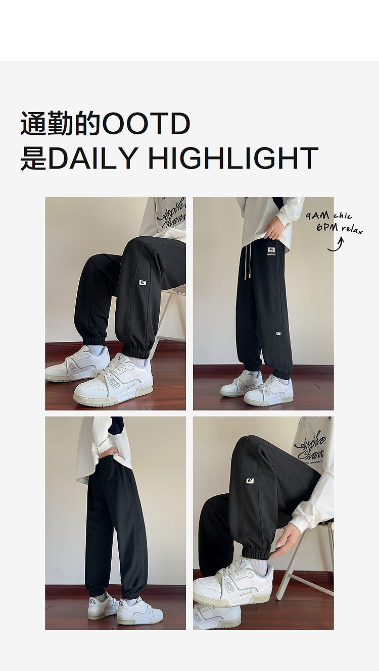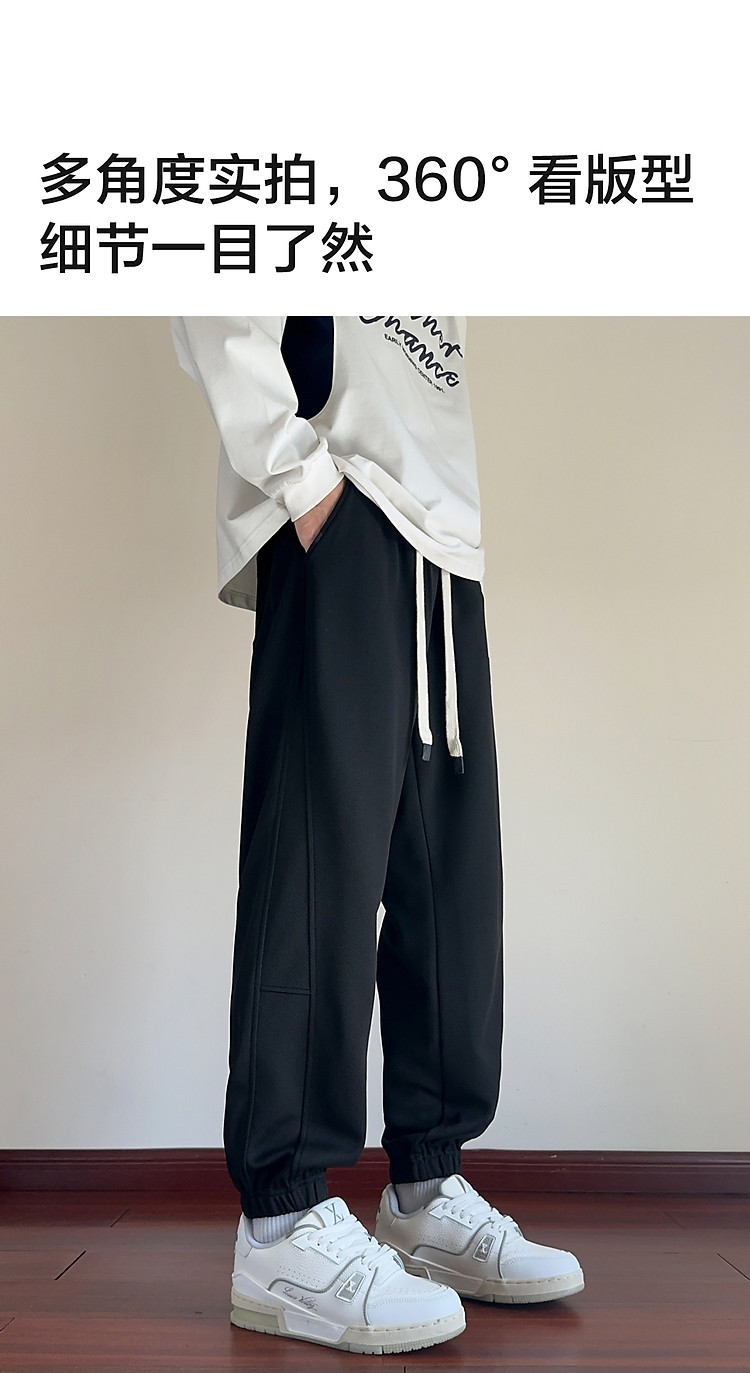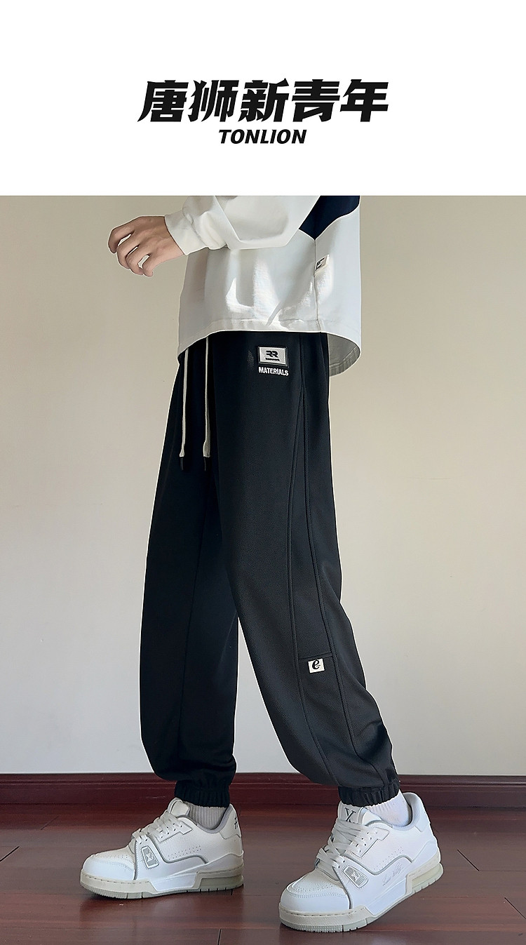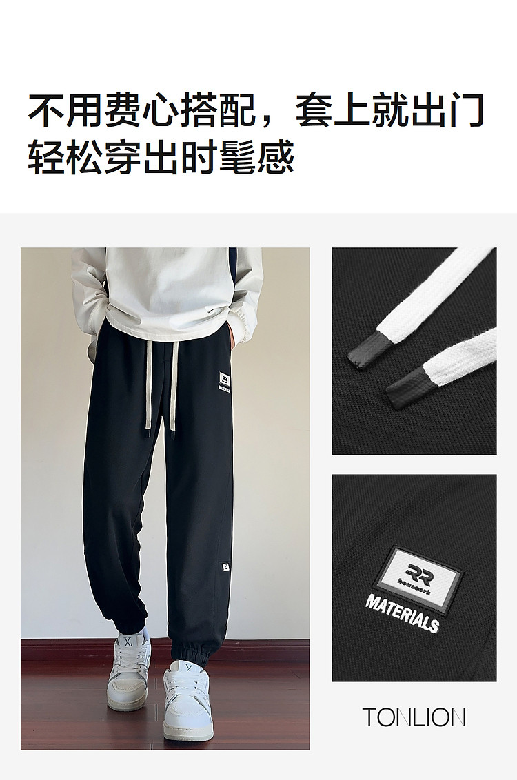 唐狮25秋季新款男休闲裤抽绳针织束腿潮流时尚设计黑色运动长裤
