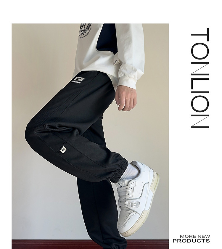 唐狮2025秋冬季休闲长裤男士卫裤针织束脚裤运动风设计感男裤百搭
