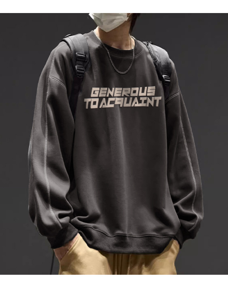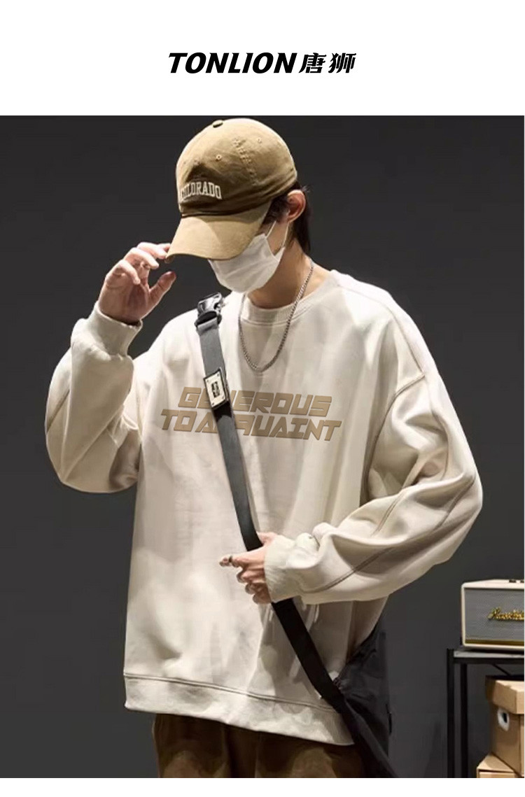 唐狮2026春秋男士圆领卫衣设计感美式青少年简约休闲慵懒宽松上衣