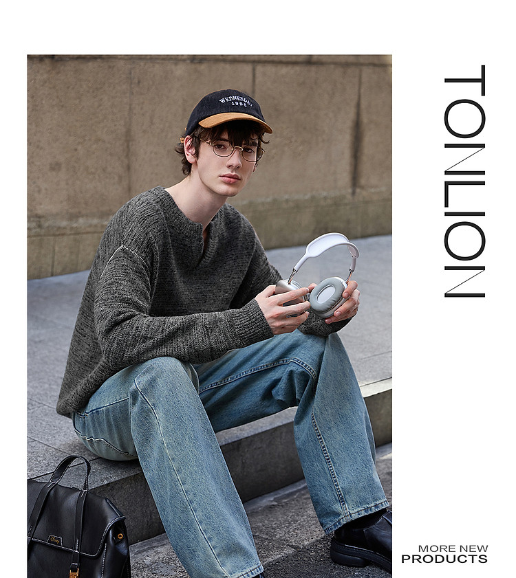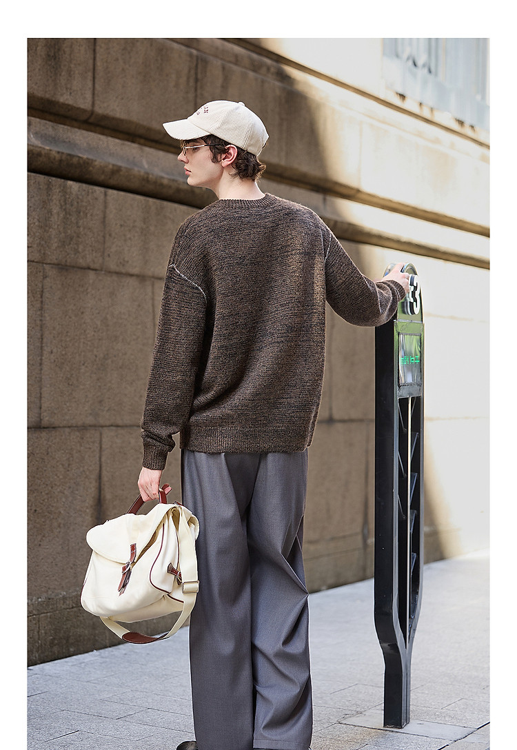唐狮2026秋季新款圆领毛线衫男士慵懒风小众设计感潮流百搭时尚