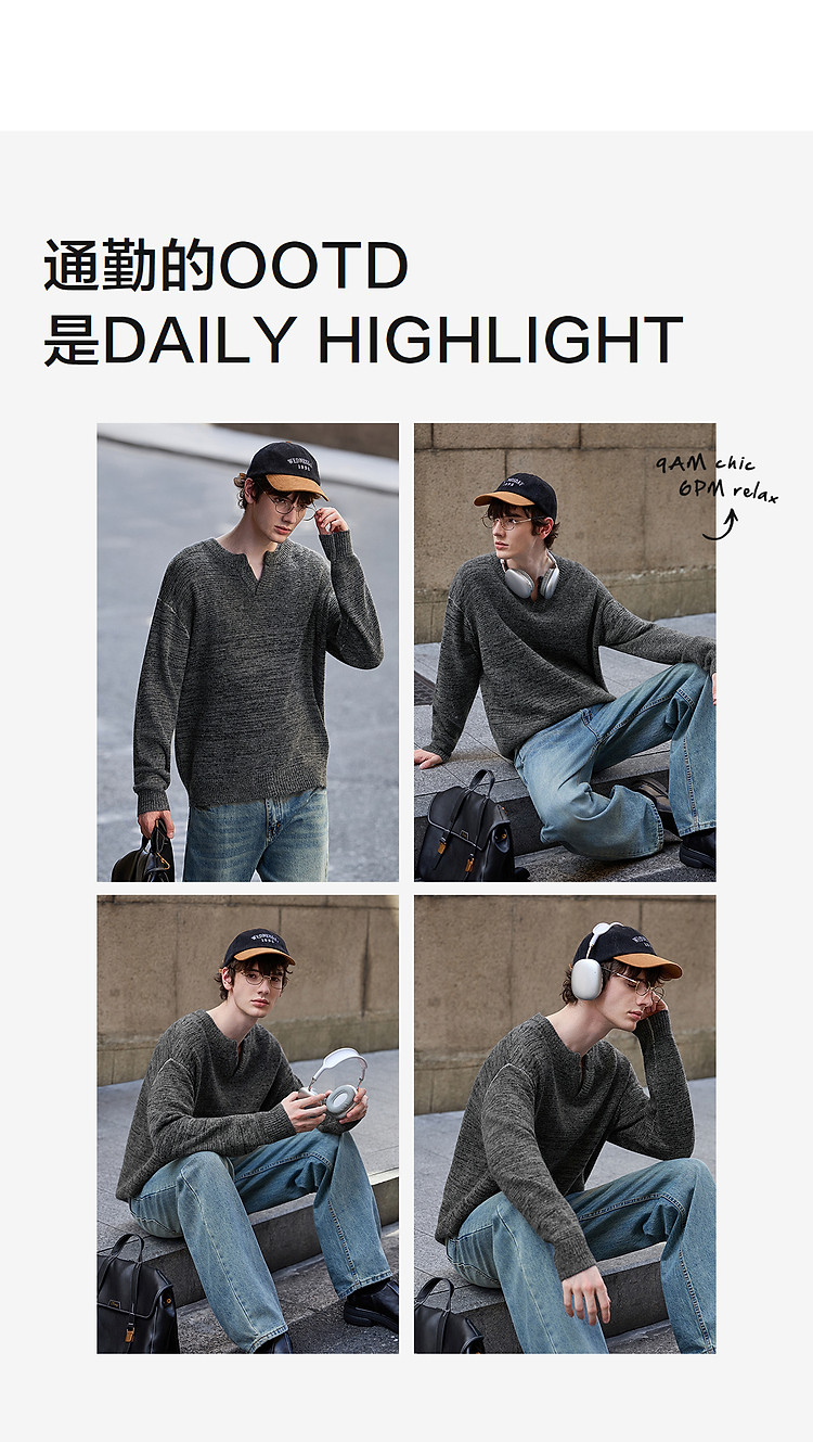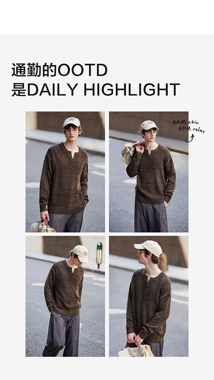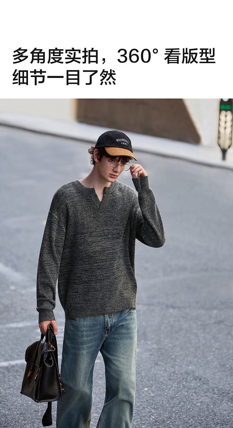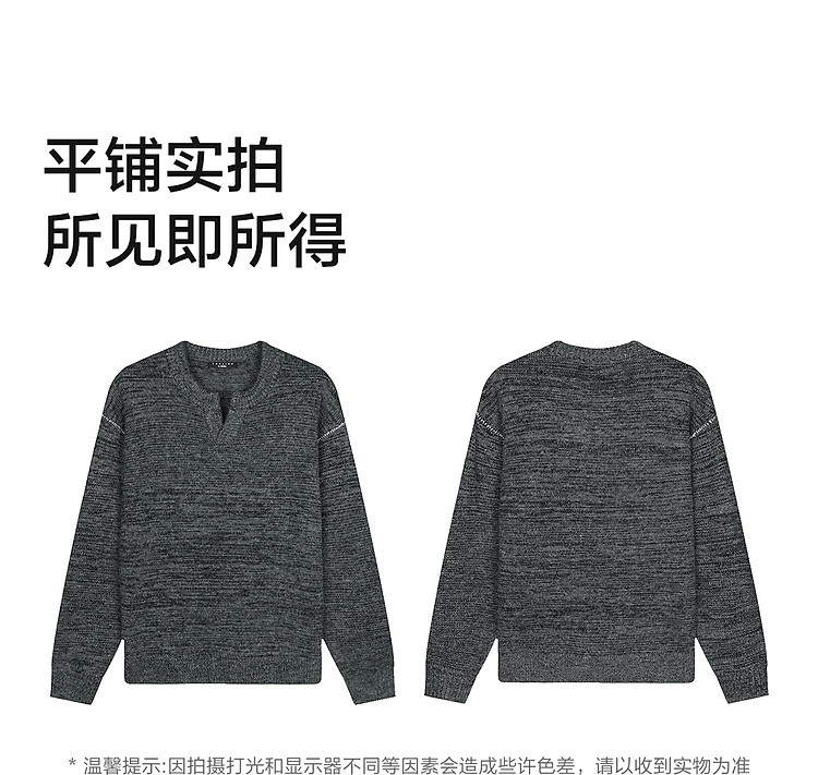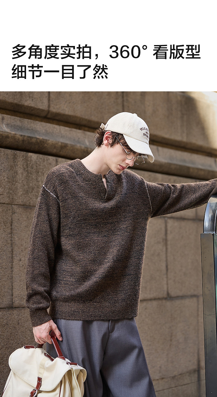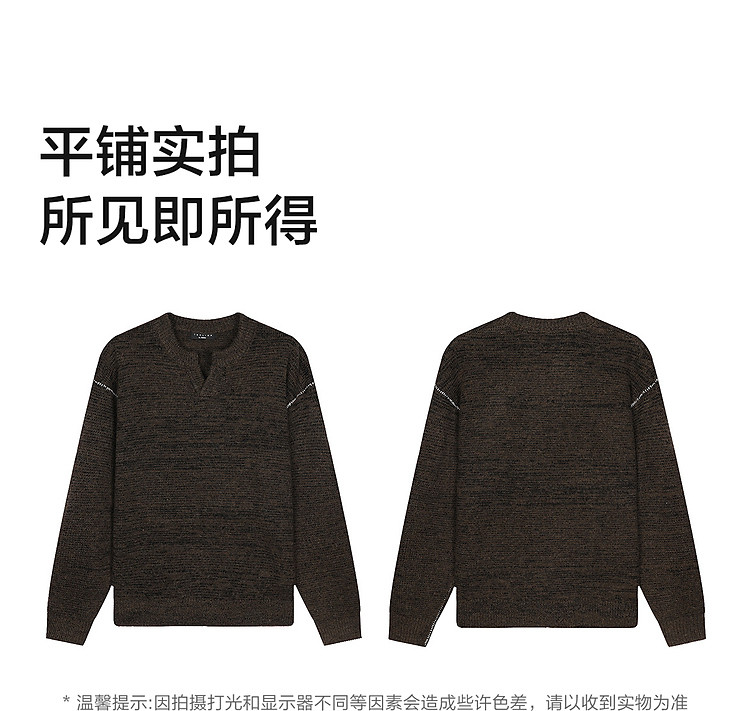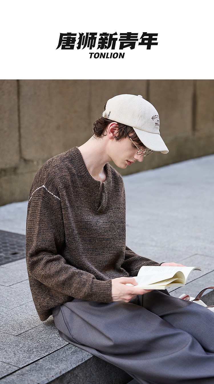 唐狮2026秋冬季毛衣男圆领套头小V撞色明线德美拉肌理感毛线衫