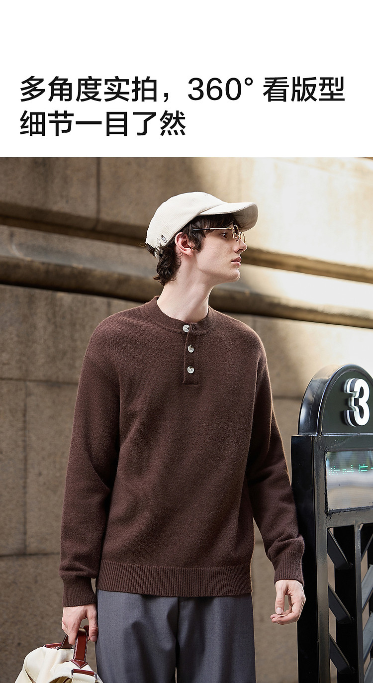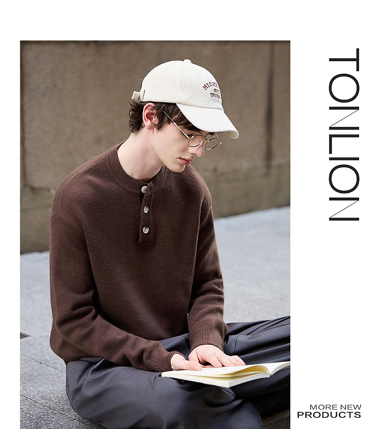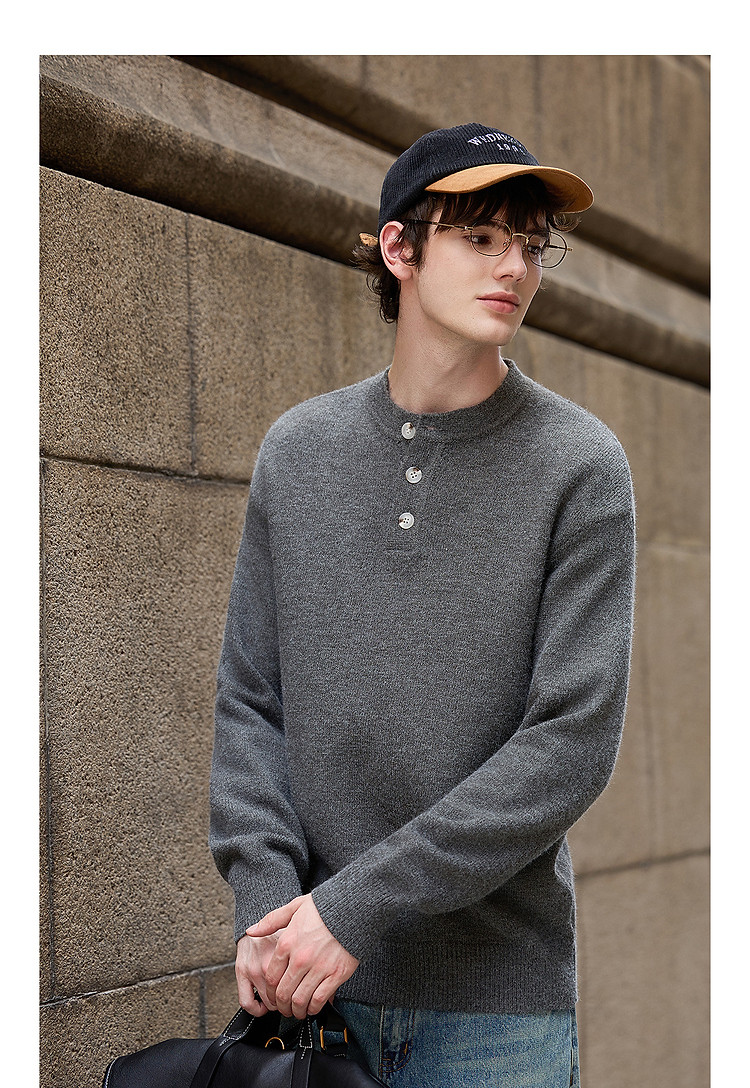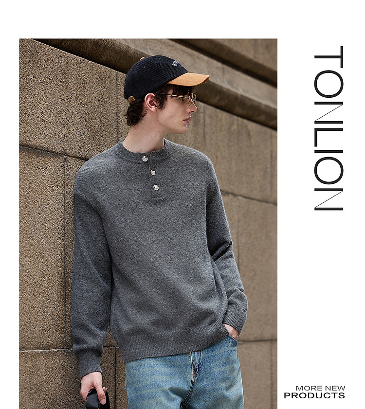 唐狮2026秋冬季新款毛衣男圆领净色半开胸美拉德时尚百搭毛线衫