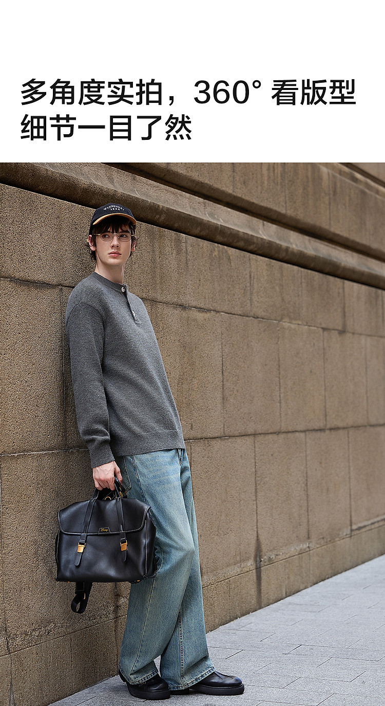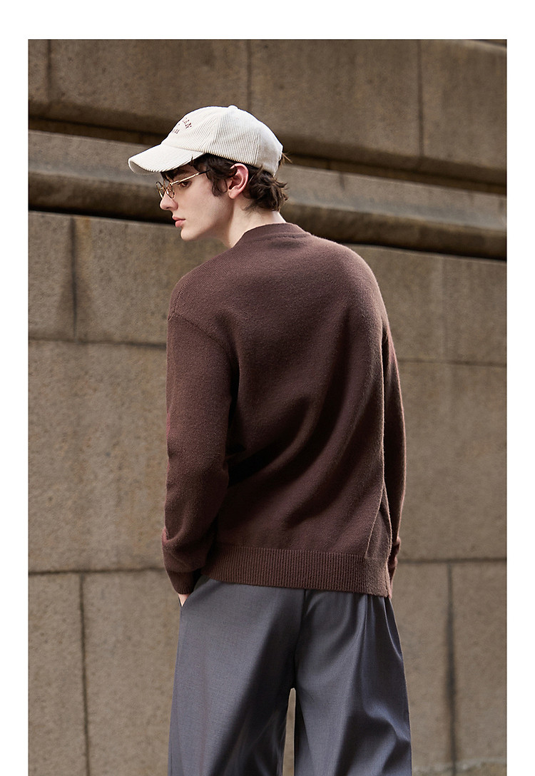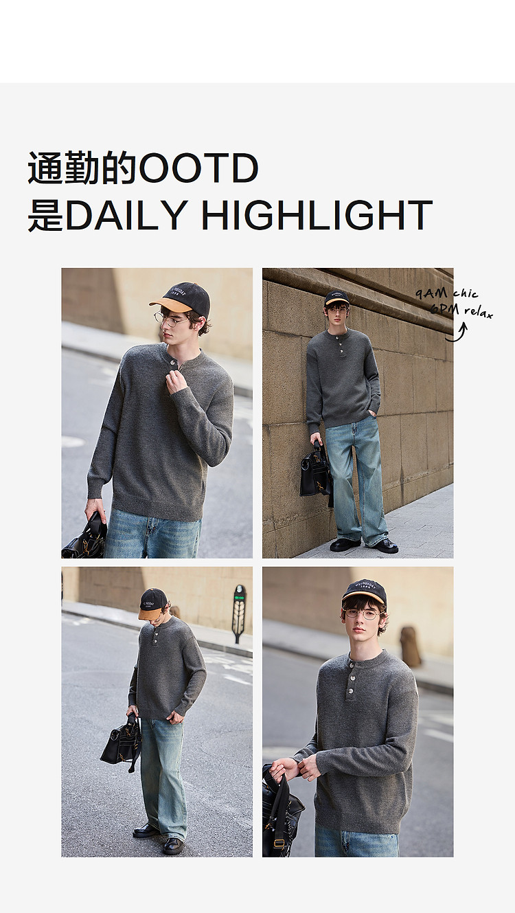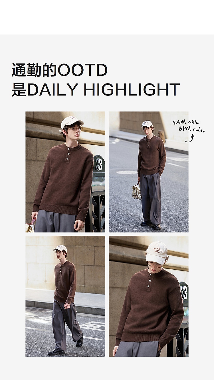 唐狮2026秋冬季新款毛衣男圆领净色半开胸美拉德时尚百搭毛线衫
