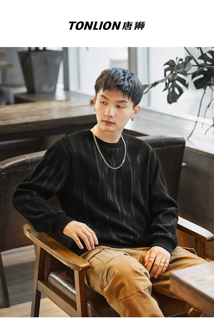 唐狮2026春秋季卫衣男士肌理面料设计感圆领上衣简约休闲慵懒风