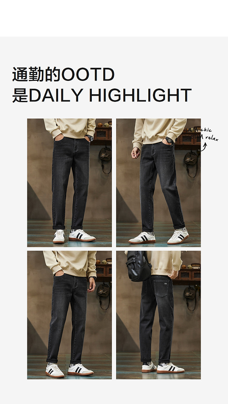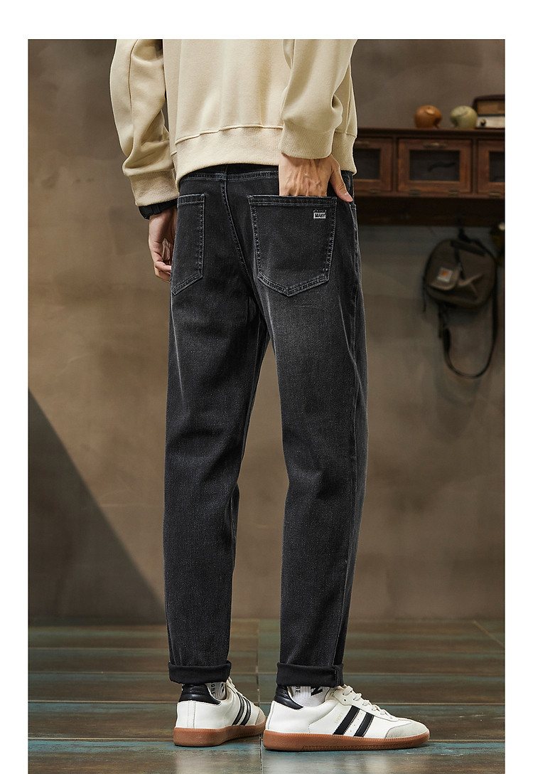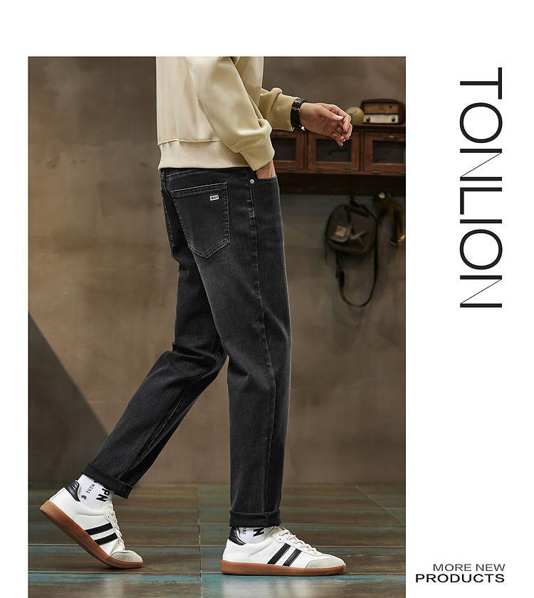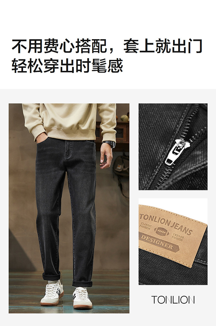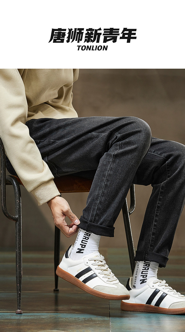 唐狮2026秋冬季牛仔长裤男口款小脚裤美式复古做旧黑灰色男裤潮流