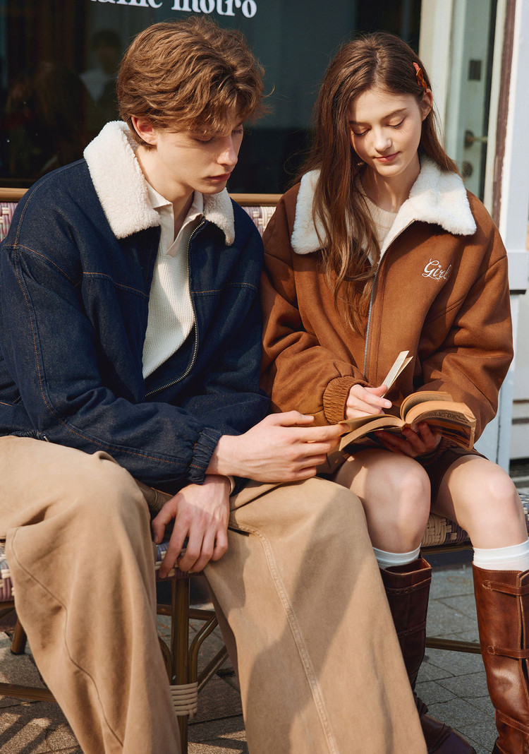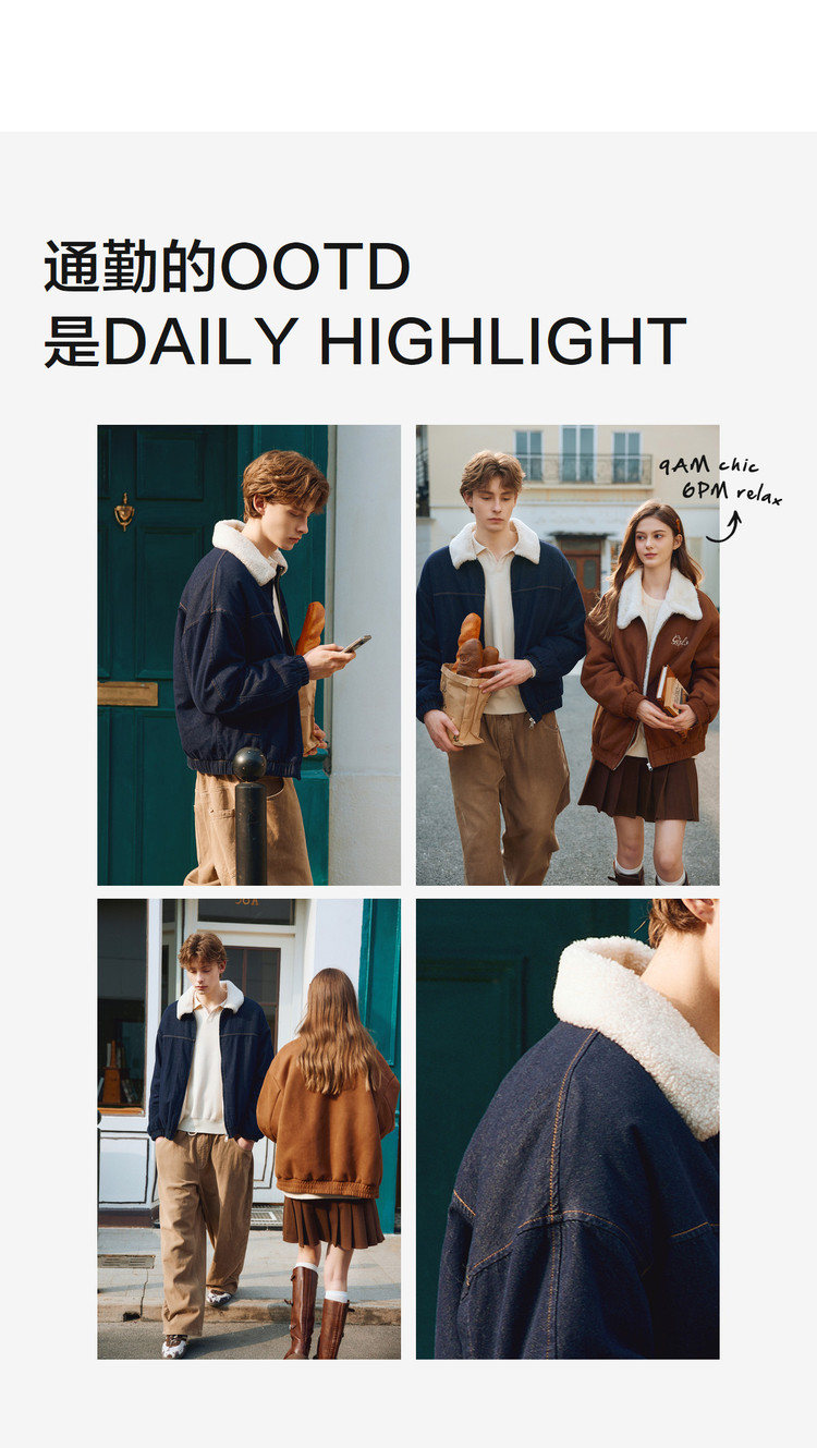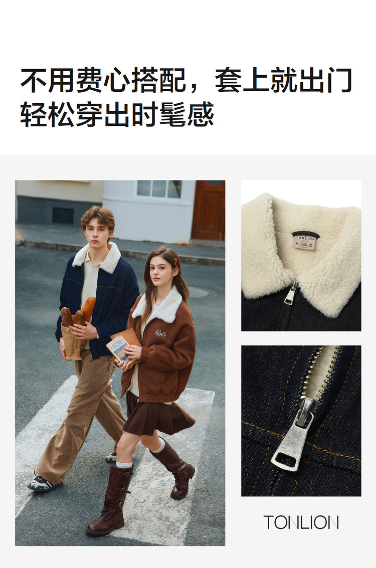 唐狮2026秋冬季外套男仿羔毛领拼接宽松休闲牛仔外套休闲风百搭