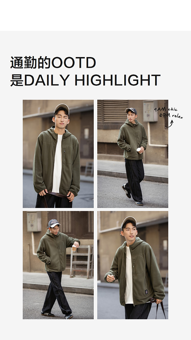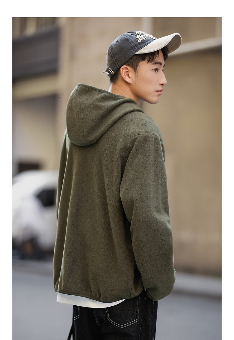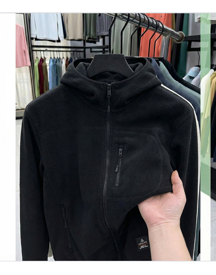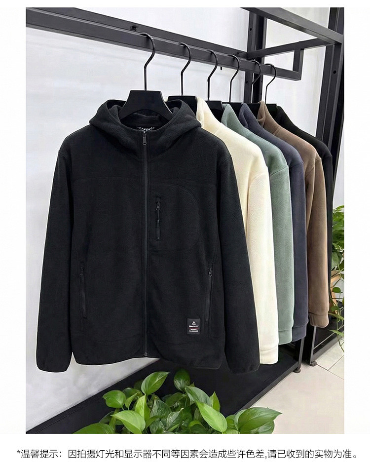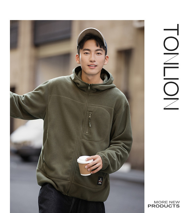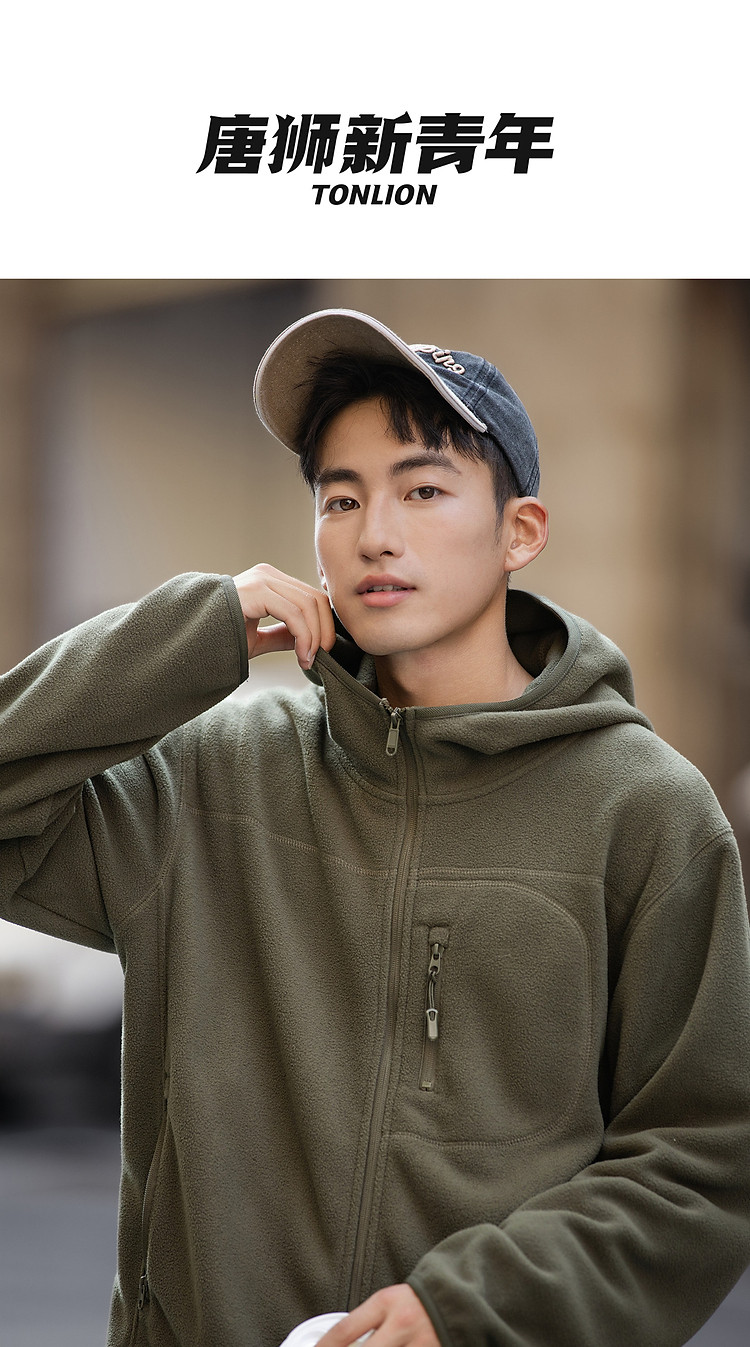 唐狮2025春秋冬季新款摇粒绒外套男连帽通勤男士夹克外套休闲保暖