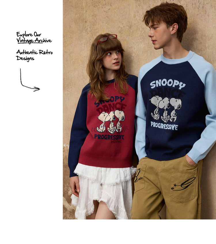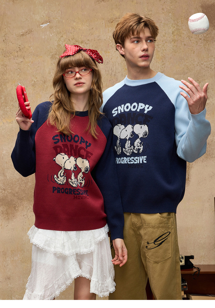 【史努比联名款】唐狮2026秋冬季情侣插肩袖卡通可爱设计毛线衫
