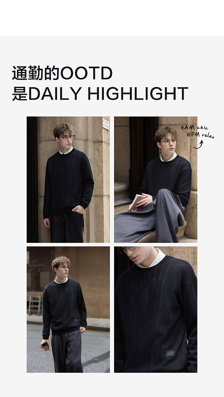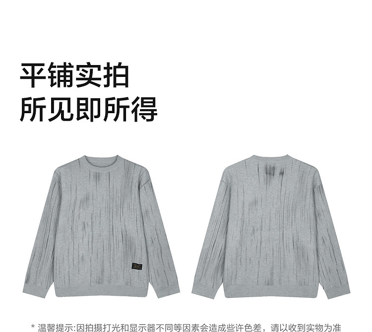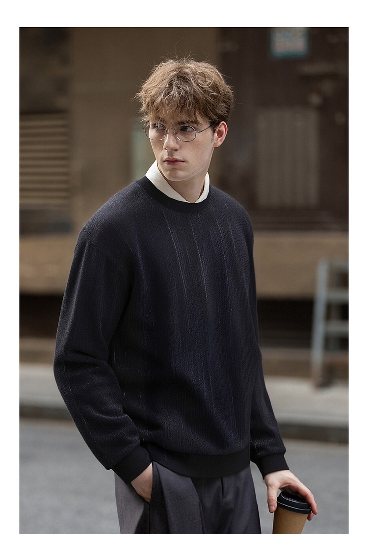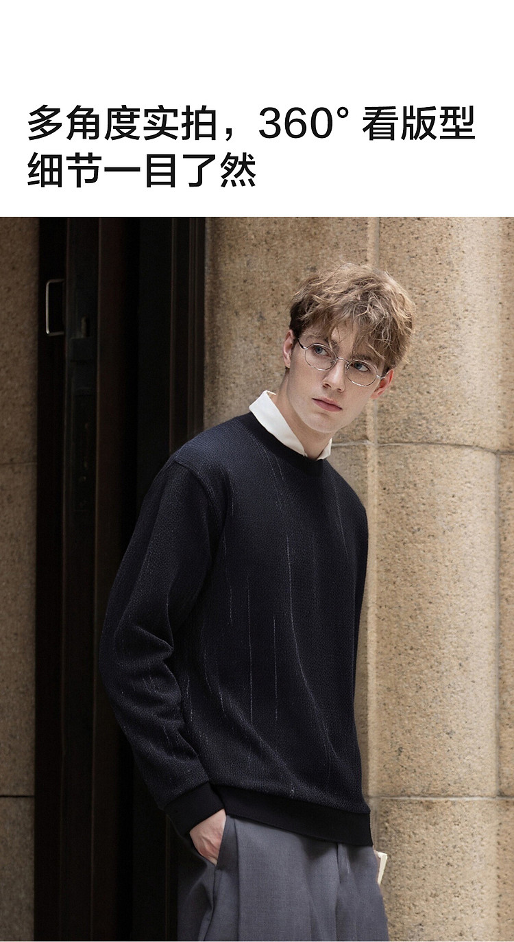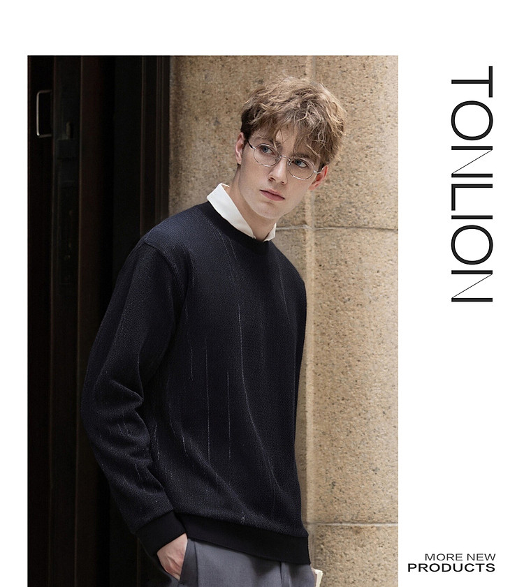 唐狮2026秋冬季毛衣男圆领套头简约设计花色毛线衫潮流黑色上衣