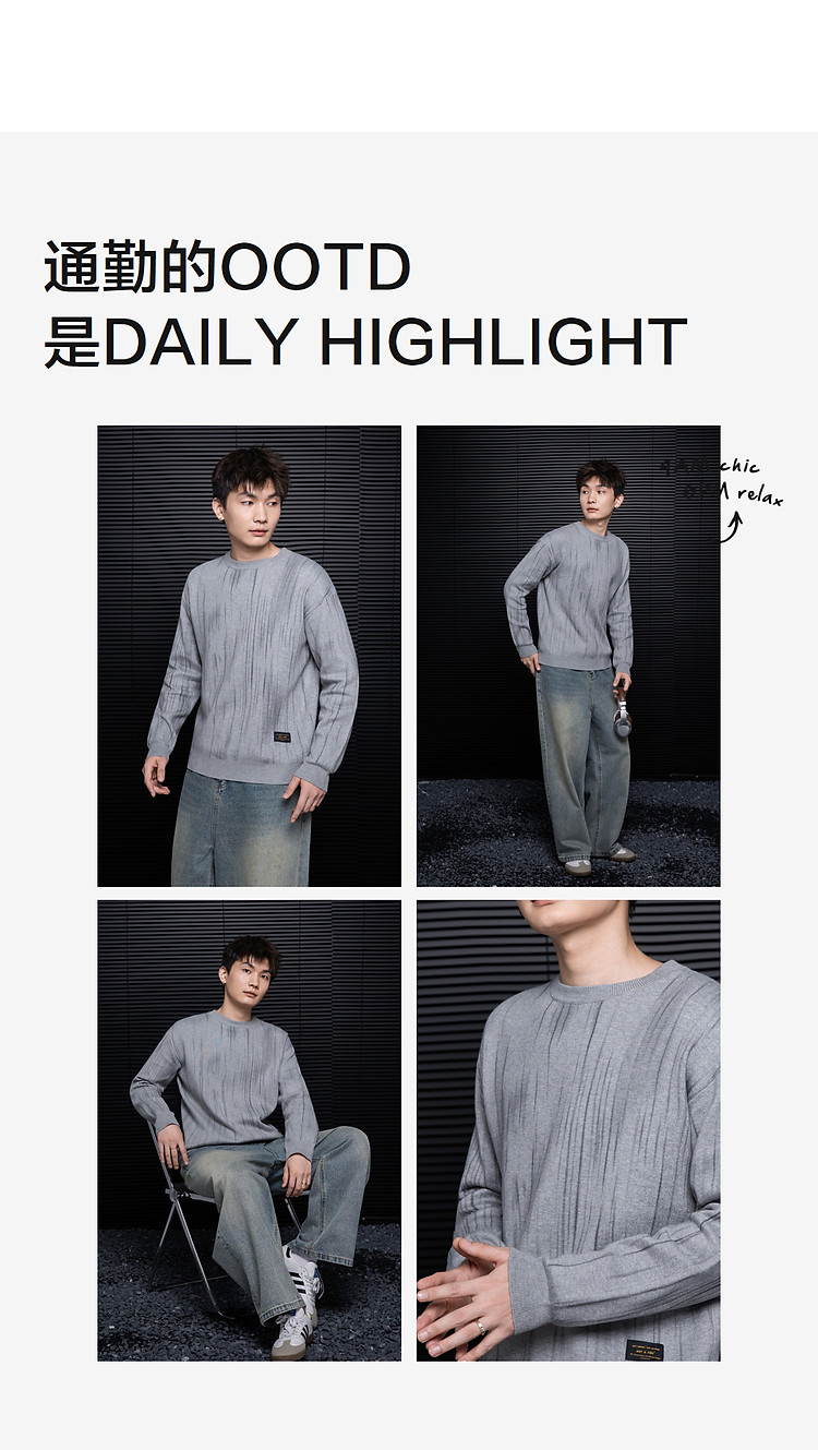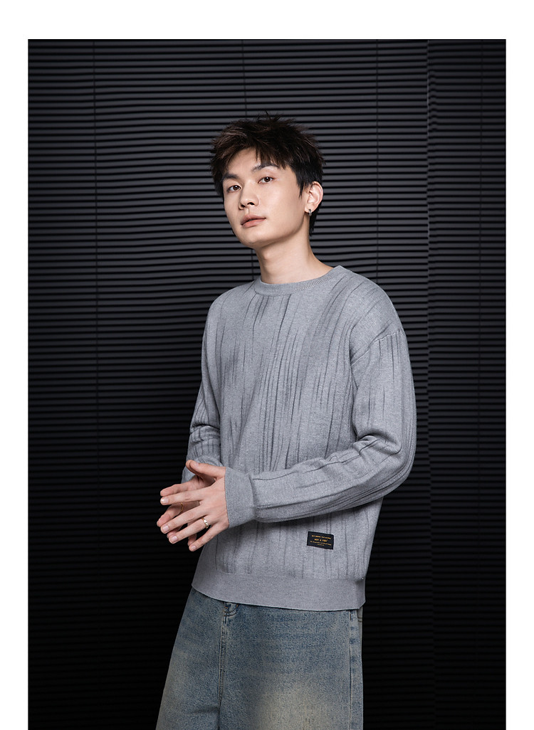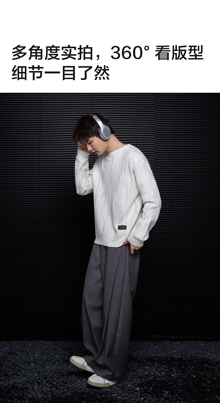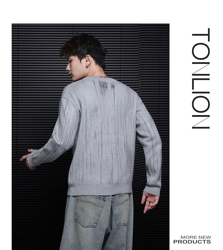 唐狮2026秋冬季毛衣男圆领套头简约设计花色毛线衫潮流黑色上衣