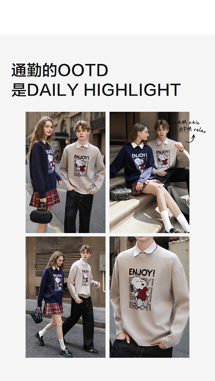 【史努比联名款】唐狮2026秋冬季新款情侣卡通可爱风毛线衫休闲风