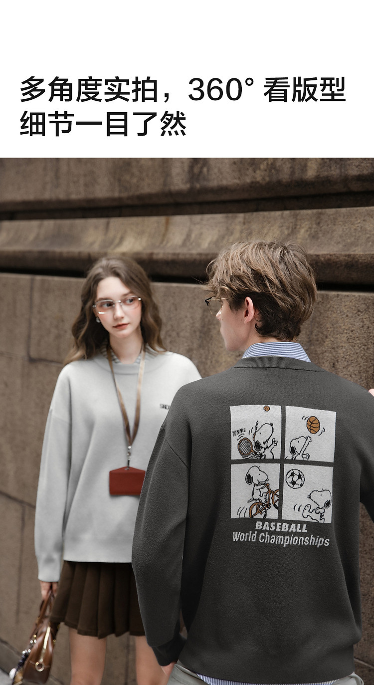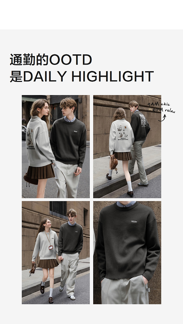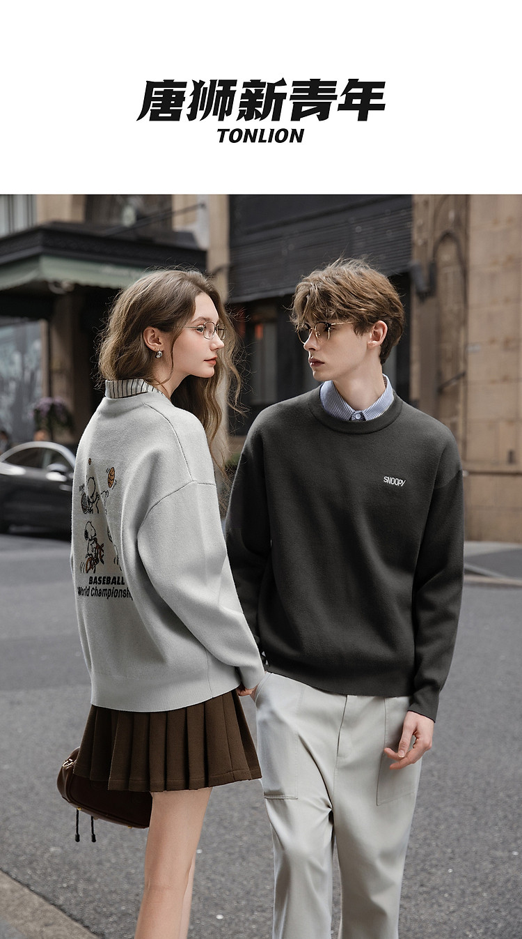 【史努比联名款】唐狮2026秋冬季新款情侣毛衣男女卡通风可爱印花