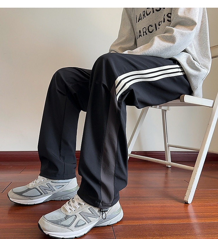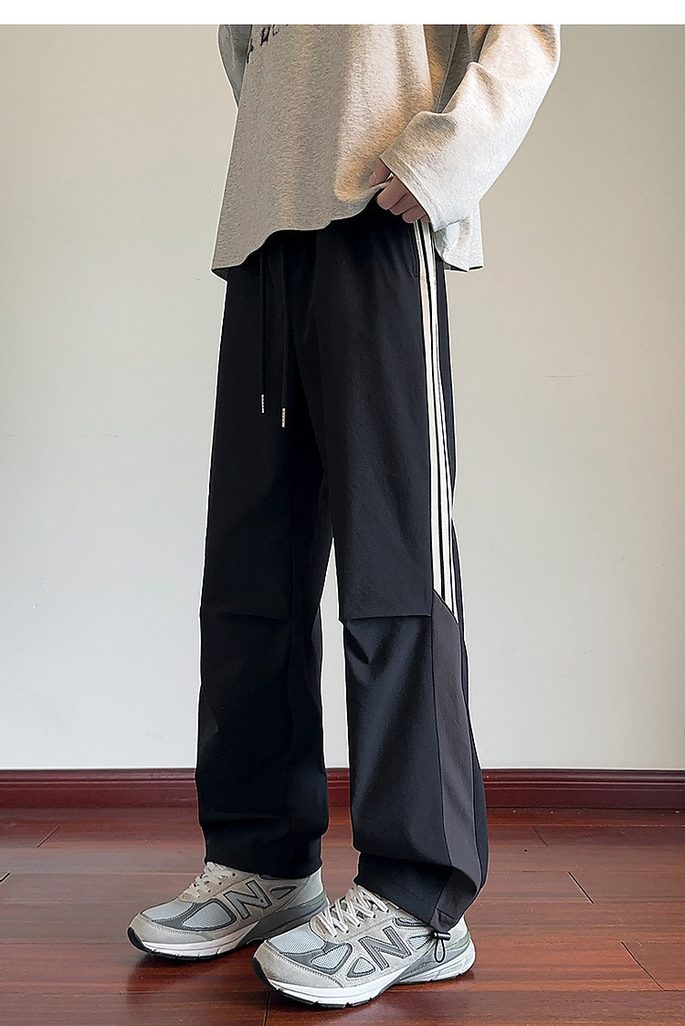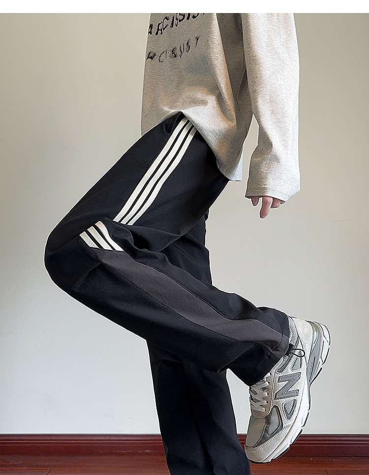 唐狮男士2026秋季新款休闲长裤运动风潮拼接尼龙直筒裤子韩系穿搭