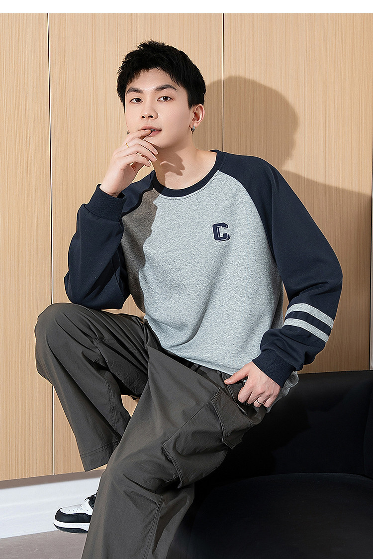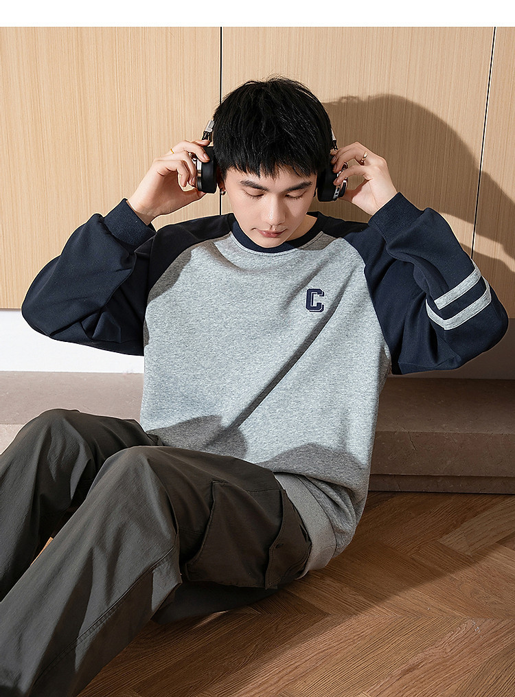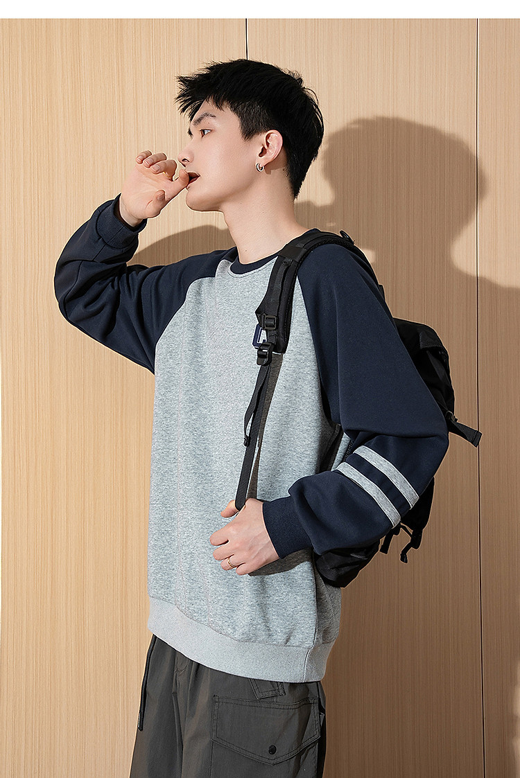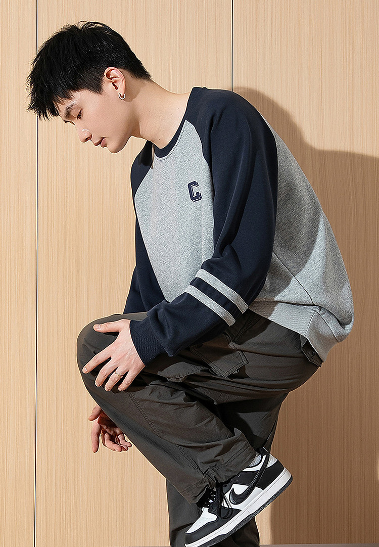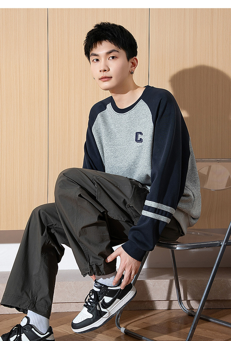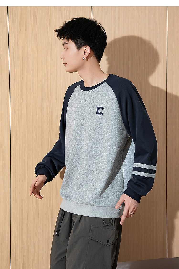唐狮2026春秋季男圆领卫衣袖子拼接款运动风少年感百搭设计时尚