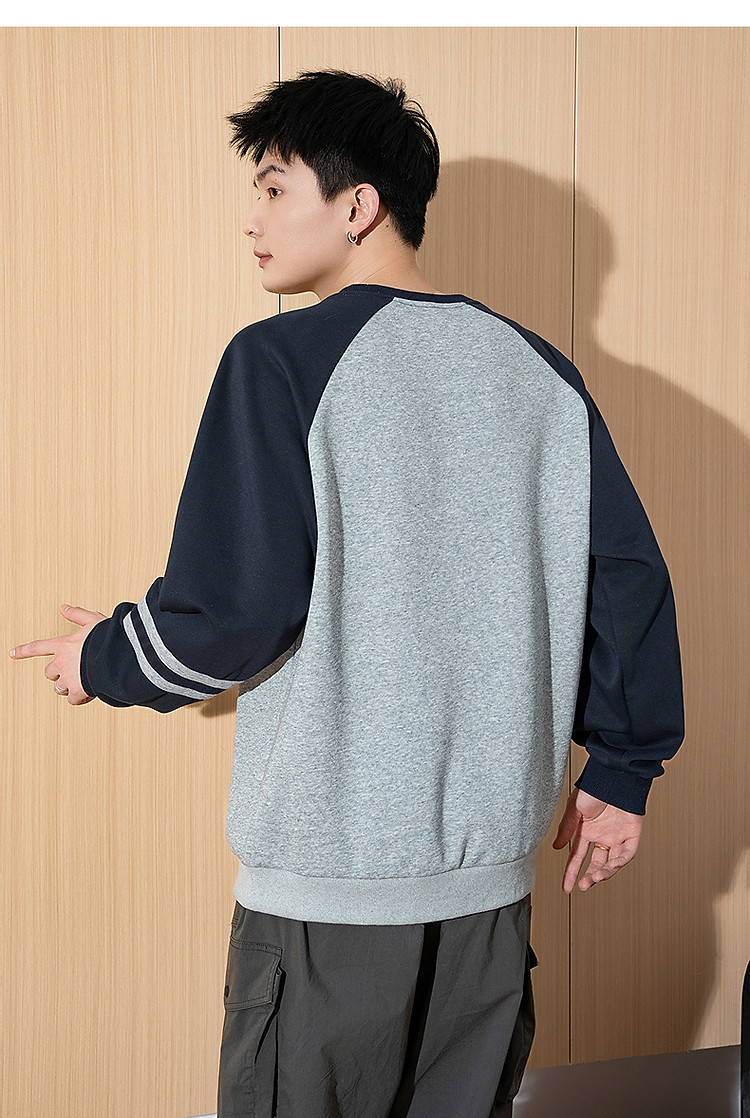 唐狮2026秋冬男圆领加绒卫衣插肩袖休闲简约宽松流行日常百搭