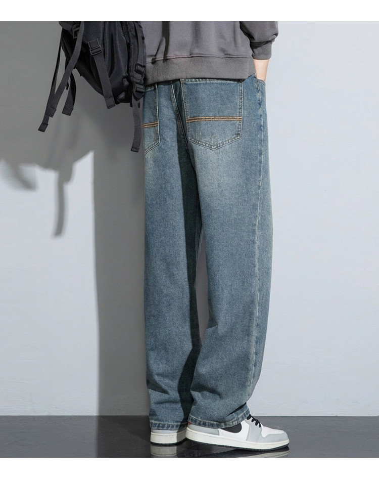 1 / 5 复古百搭秋季青年休闲韩版男下装牛仔裤通勤简约纯色直筒裤长裤男