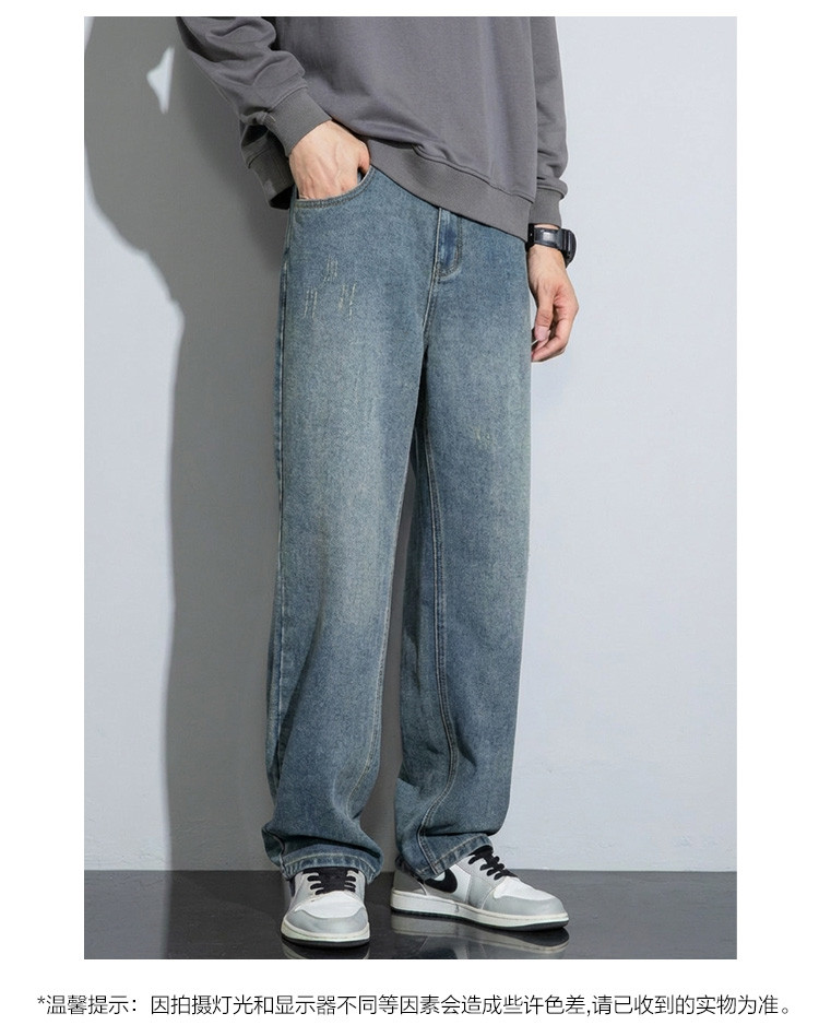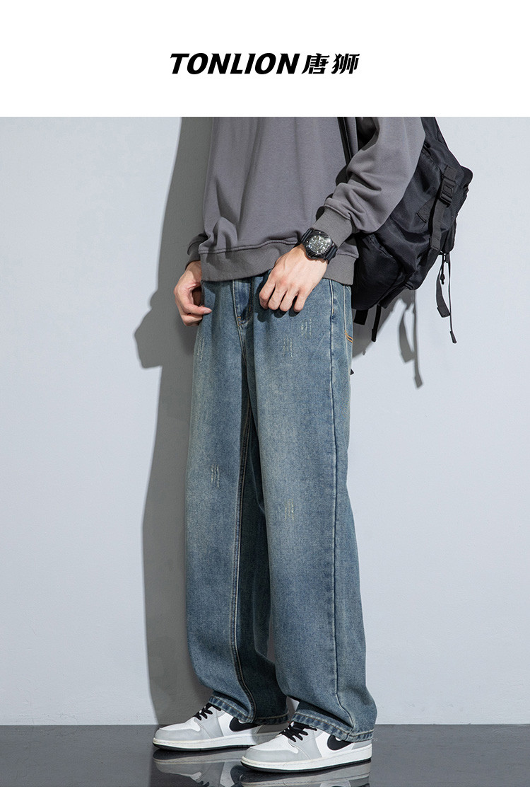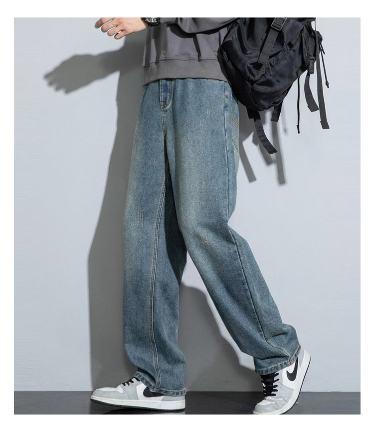 ¥120 ¥569秋冬季加绒加厚牛仔裤男式青年休闲韩版宽松美式复古做旧阔腿裤男