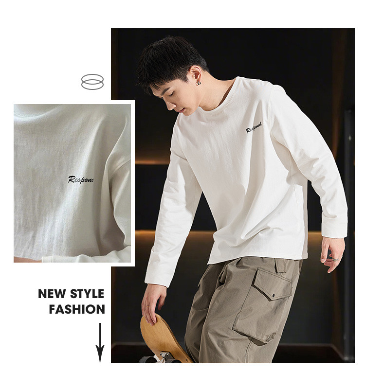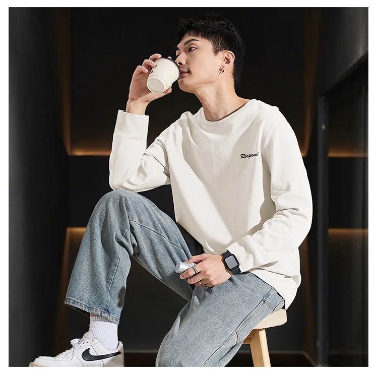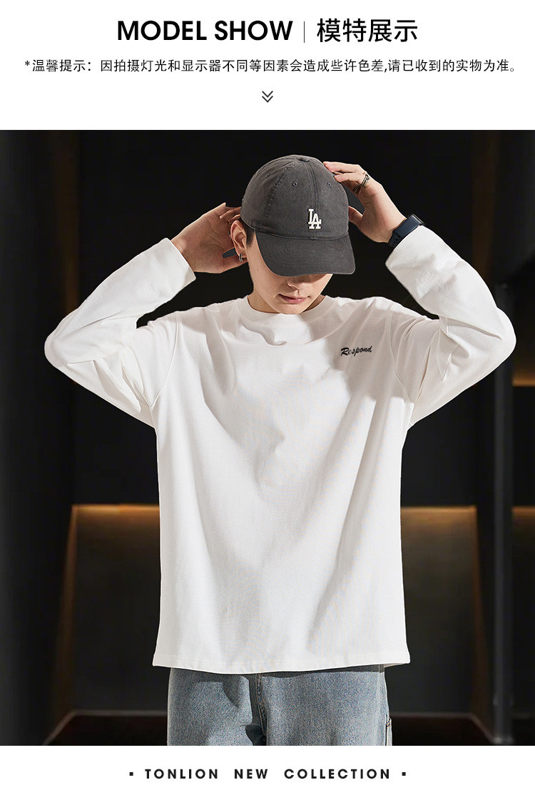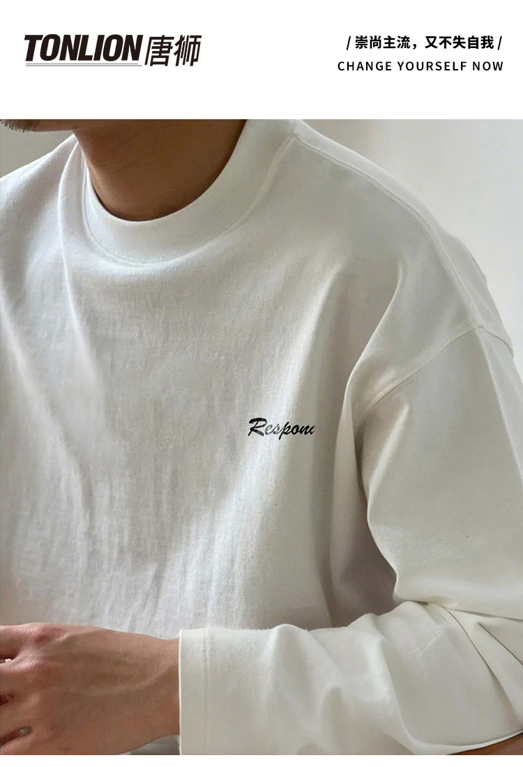 唐狮2025春款男式t恤长袖圆领左胸文字青少年运动宽松打底上衣