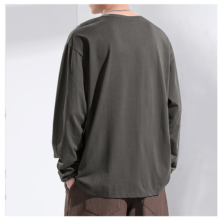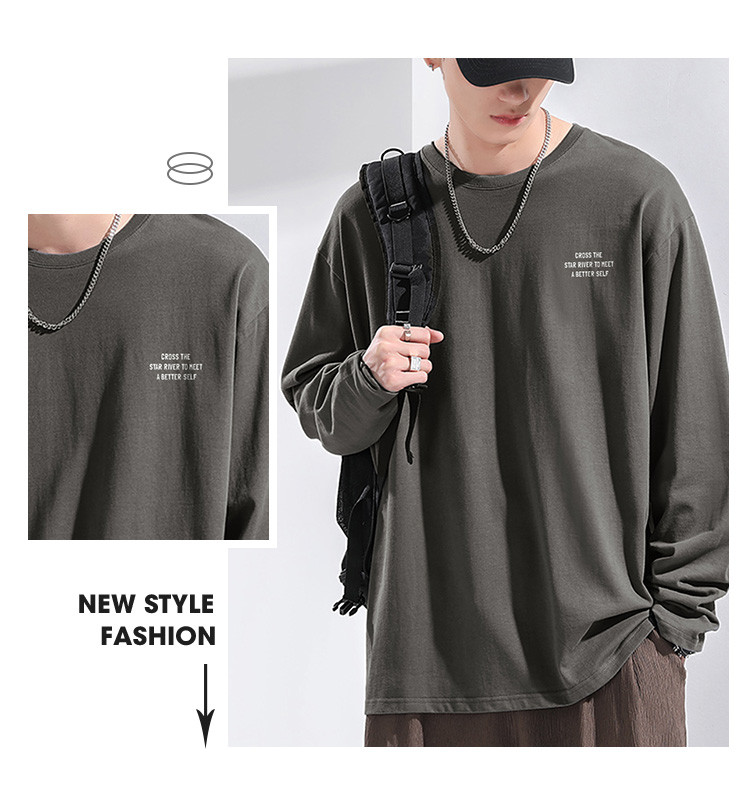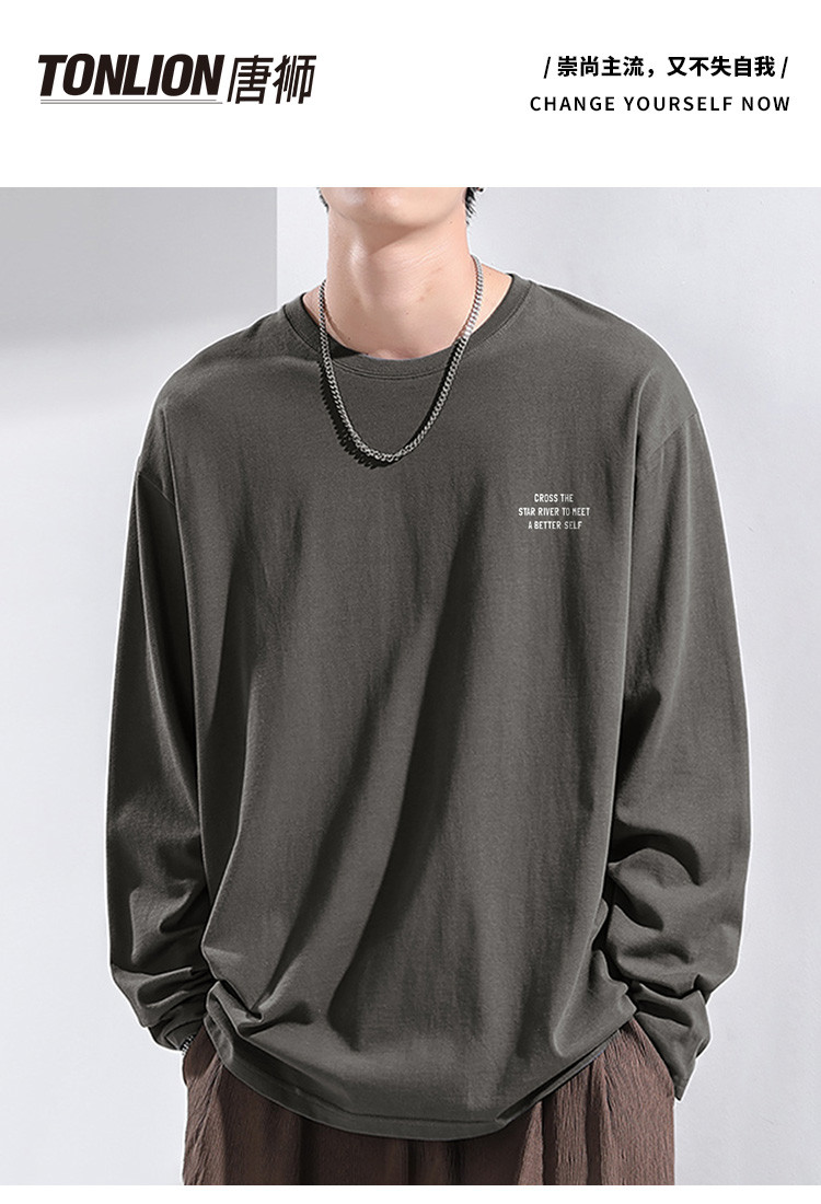 唐狮2026春款男式t恤长袖圆领左胸文字青少年运动宽松打底上衣