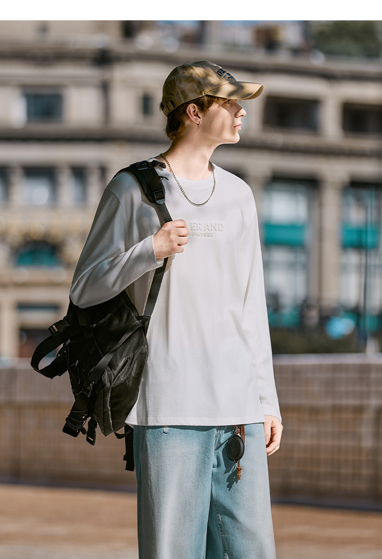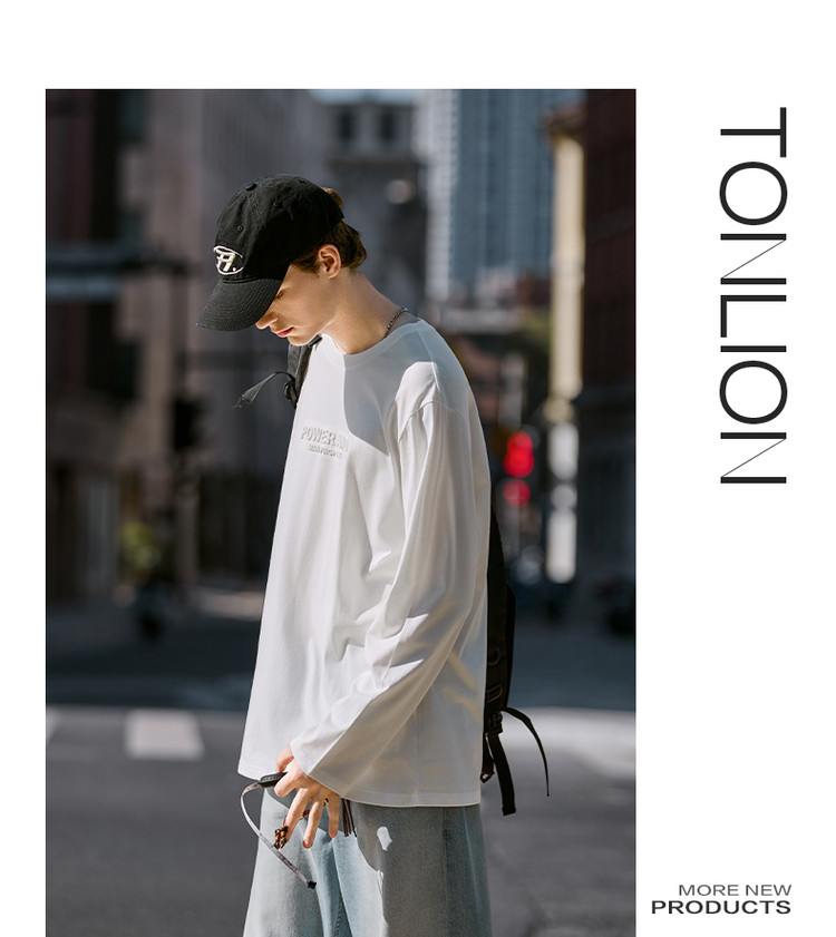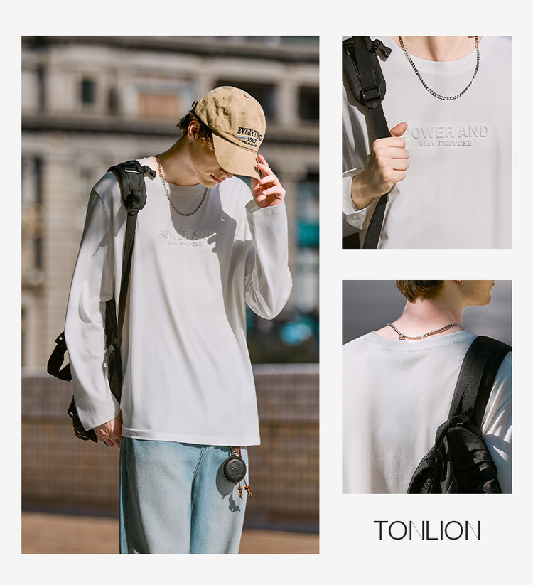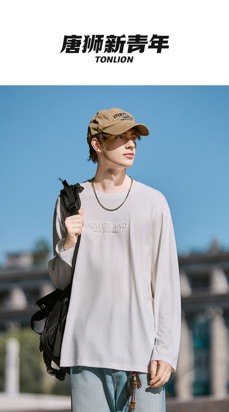 唐狮2026春秋新款白色长袖T恤男纯棉百搭宽松简约打底衫上衣服潮t