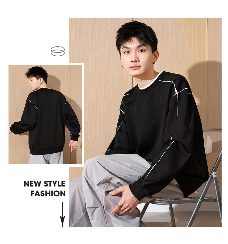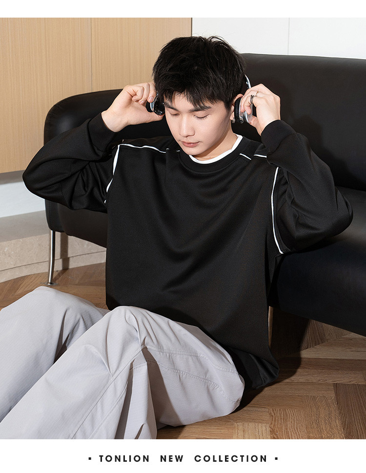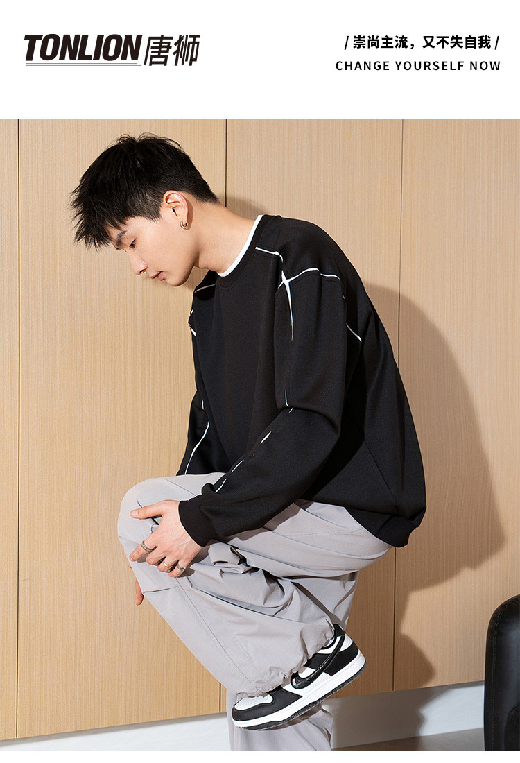 唐狮春秋季新款圆领卫衣男士美式宽松纯色上衣休闲潮简约卫衣