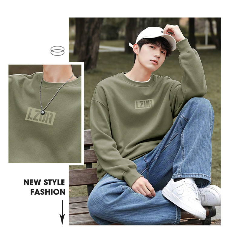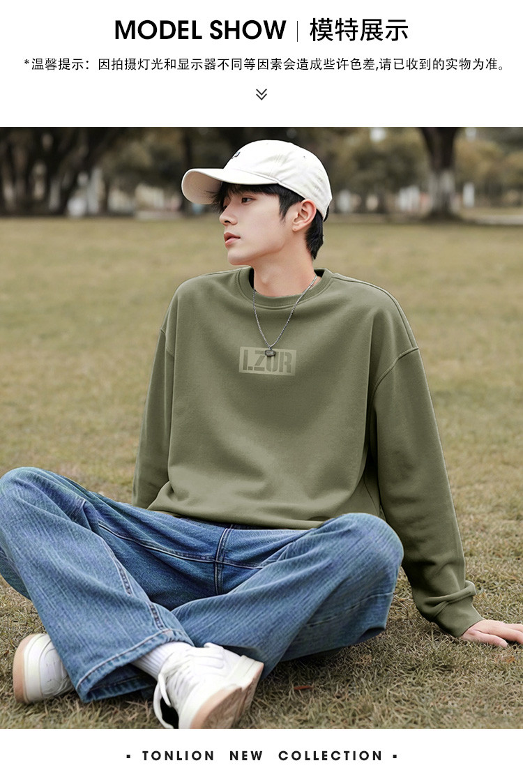 唐狮2026春秋新款圆领卫衣男士无帽青少年美式休闲上衣长袖外套潮
