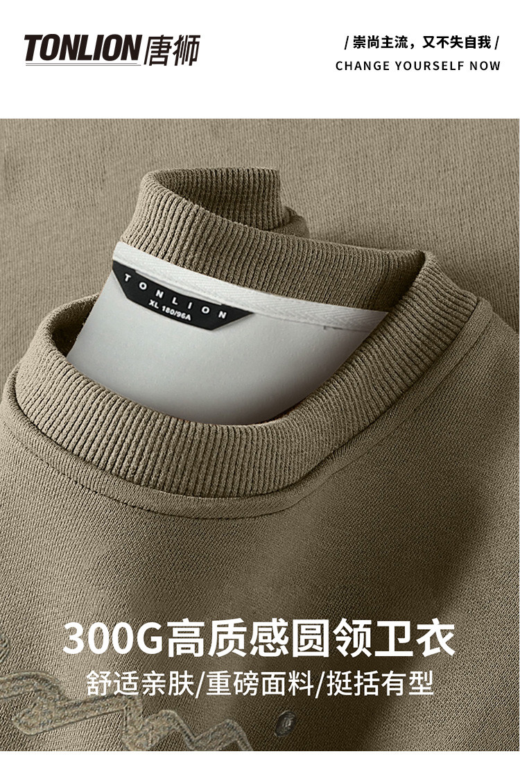 唐狮2026春秋新款男士卫衣圆领净色宽松简约青少年套头衫无帽外套