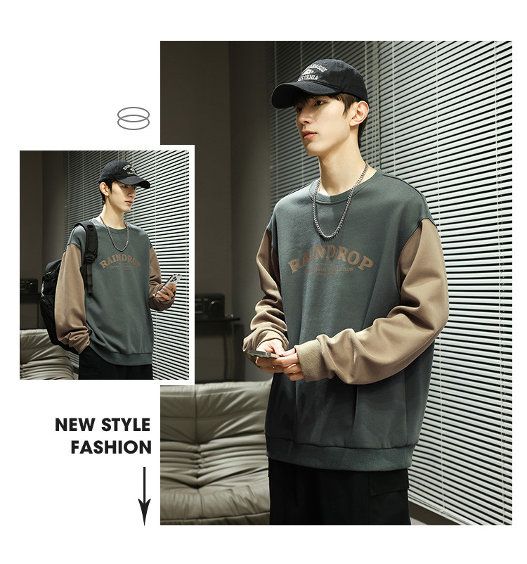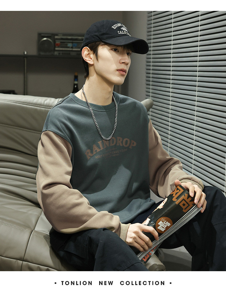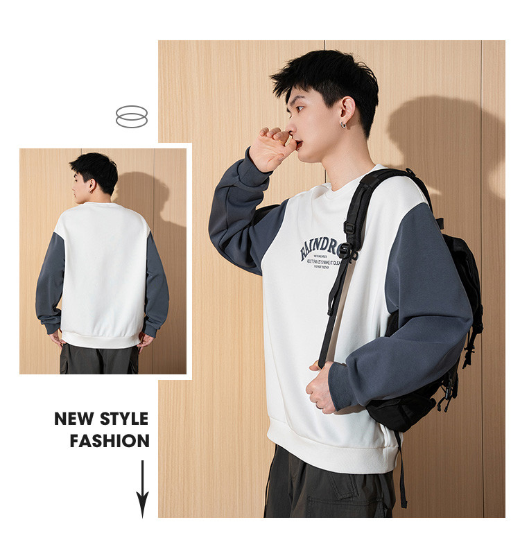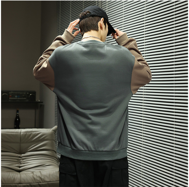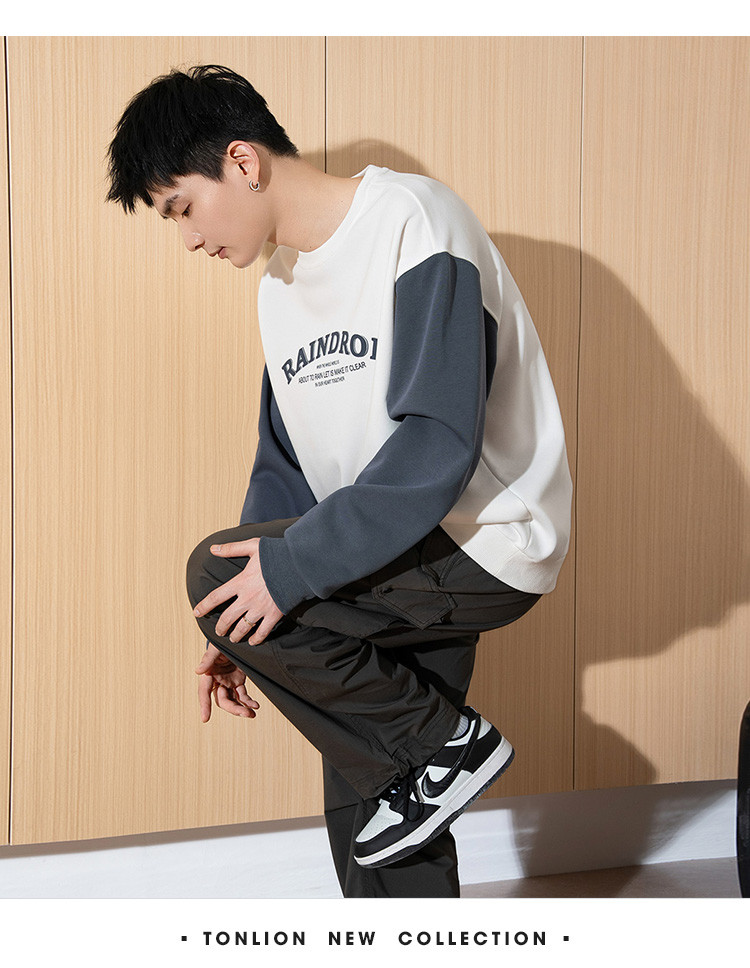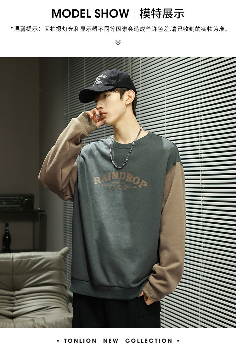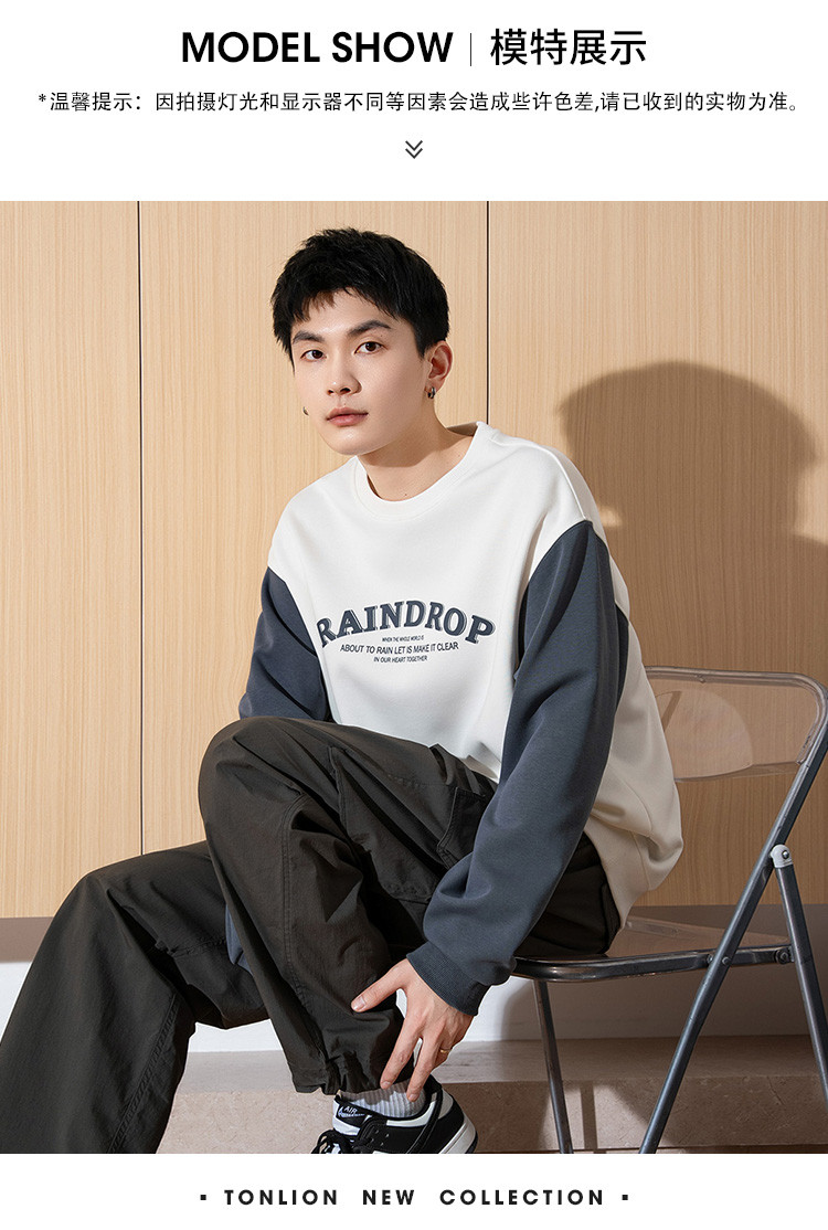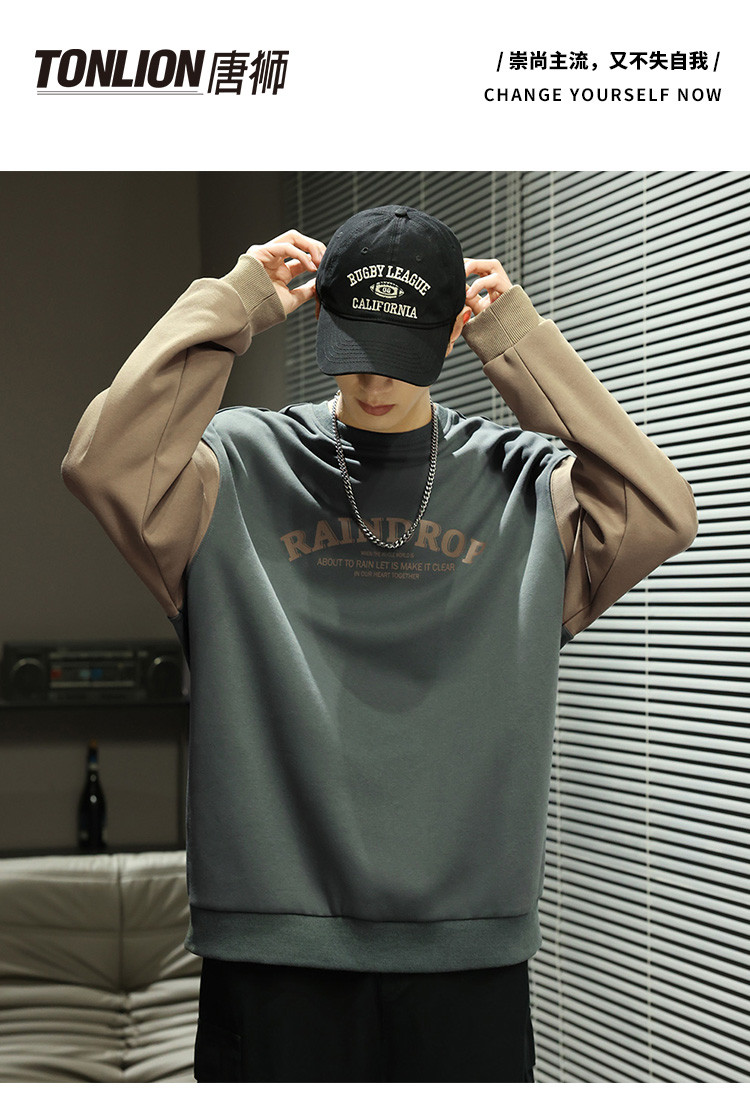 唐狮2026春秋季新款圆领卫衣男宽松撞色拼接插肩袖青少年上衣潮流