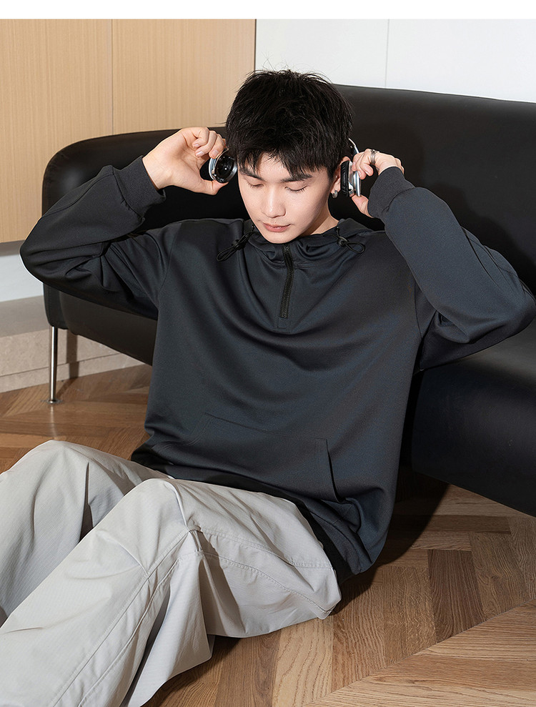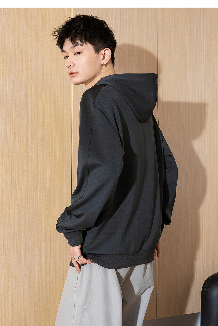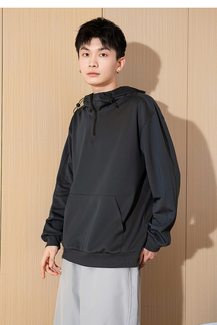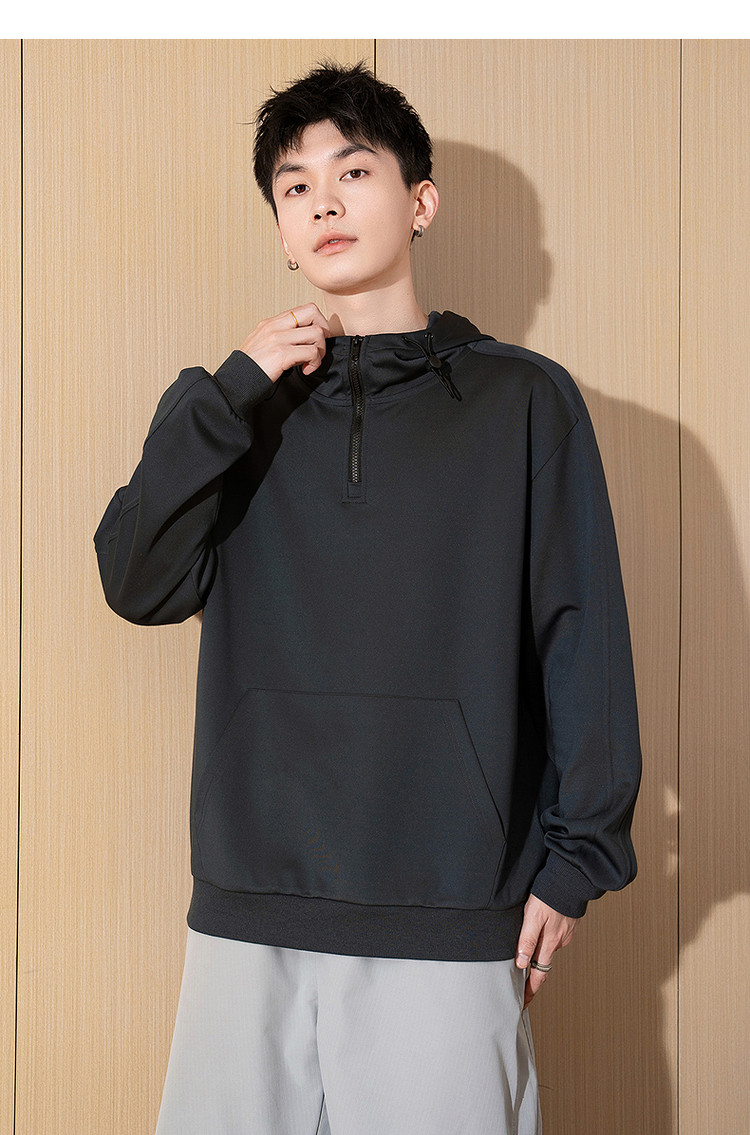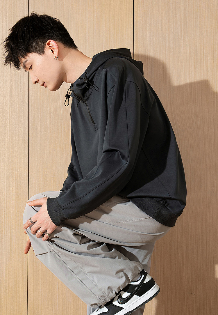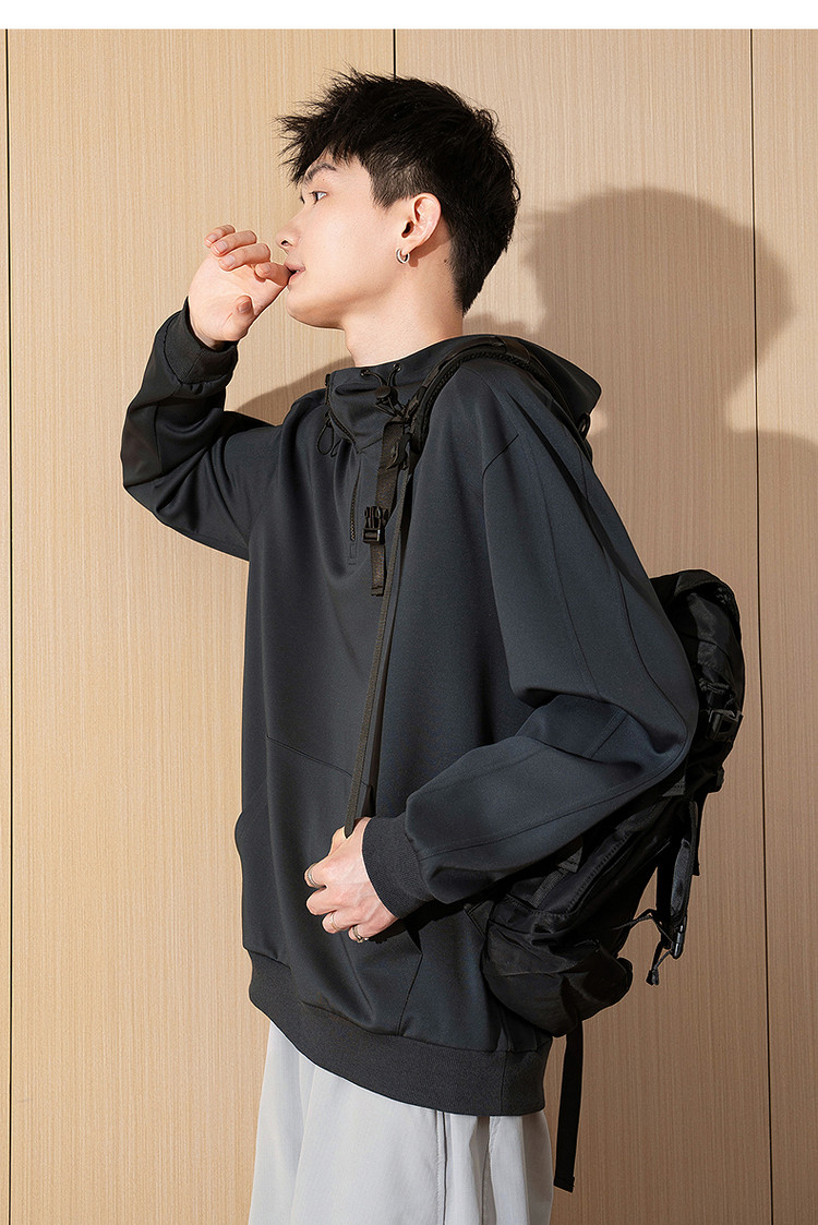 唐狮春季新款男士卫衣连帽抽绳拉链宽松套头外套港风休闲上衣