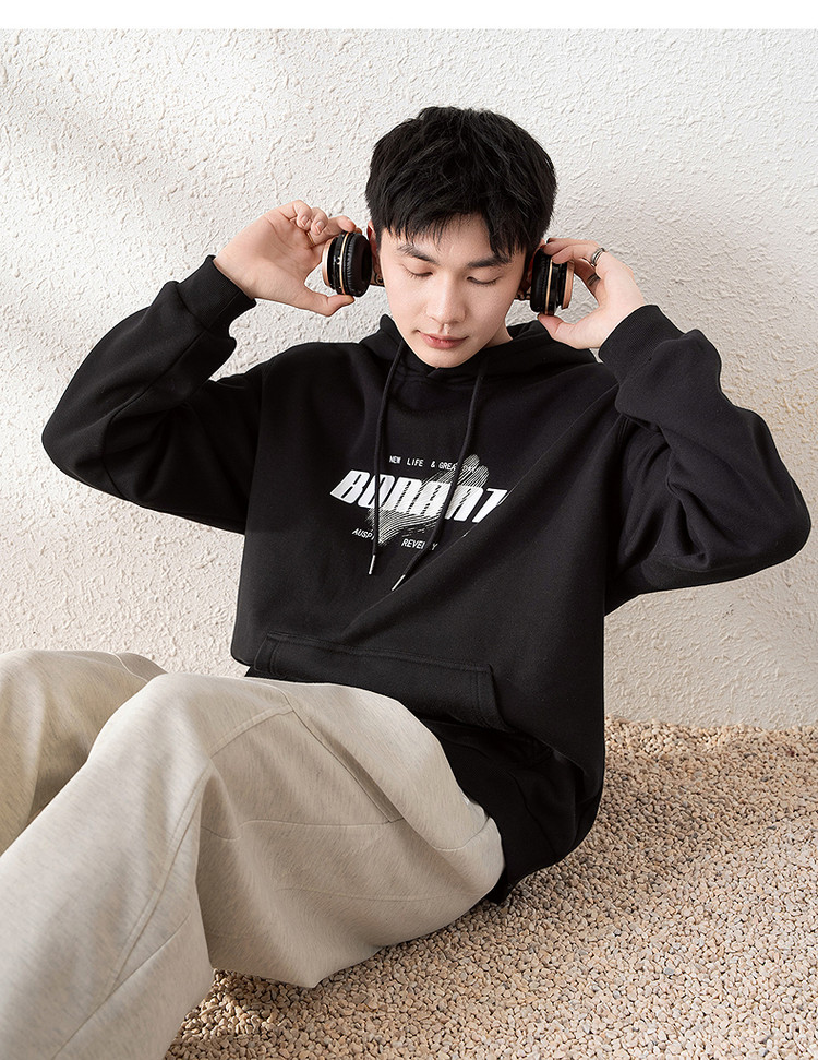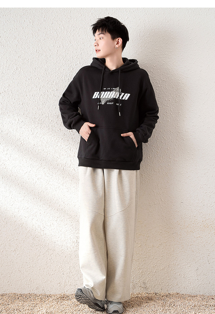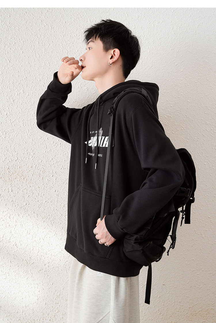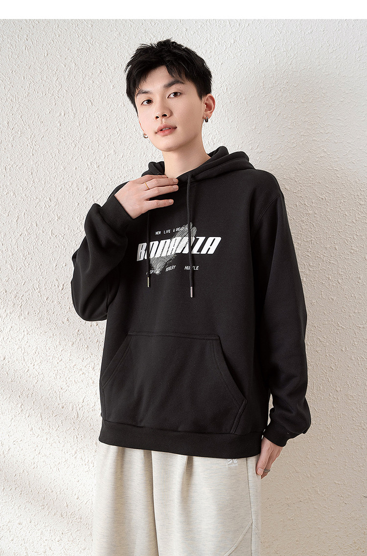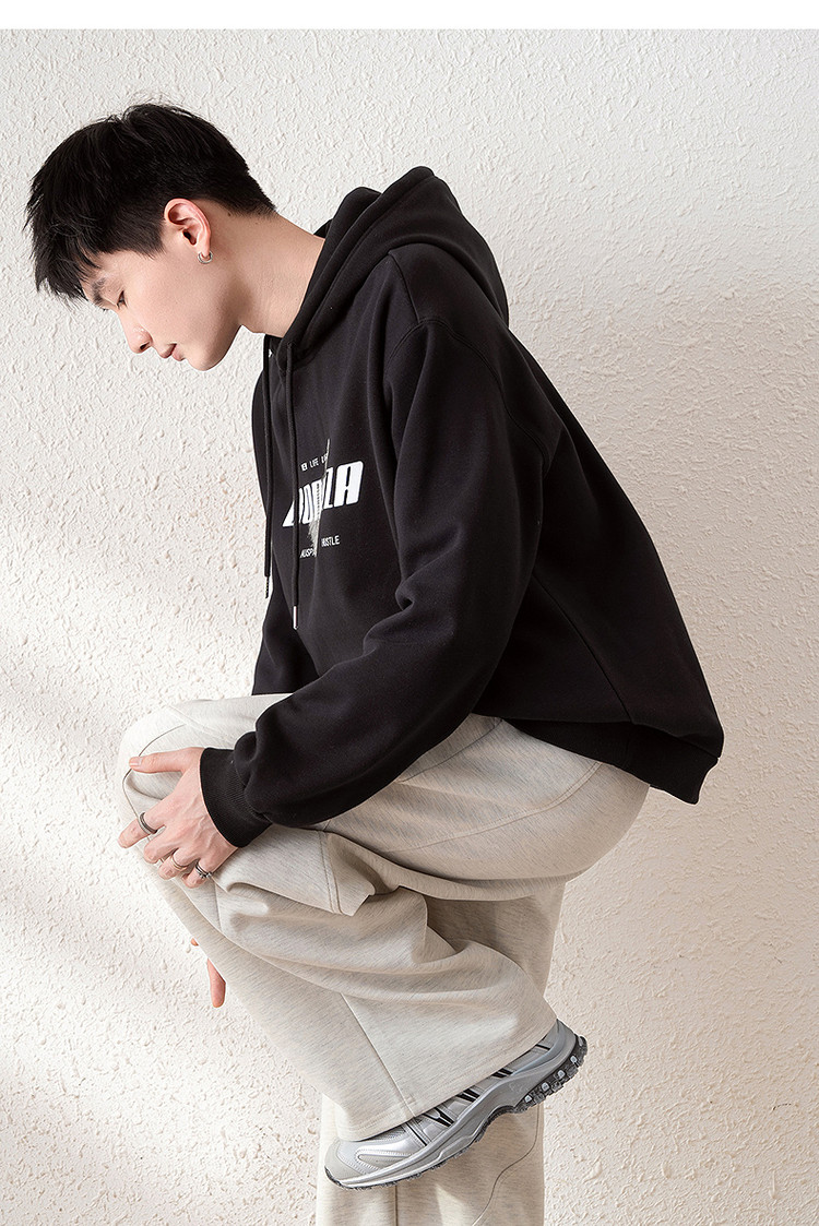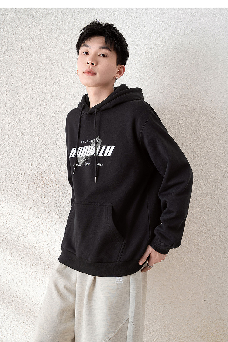 唐狮2025春季新款男卫衣前胸字母设计连帽套头衫青少年外套潮
