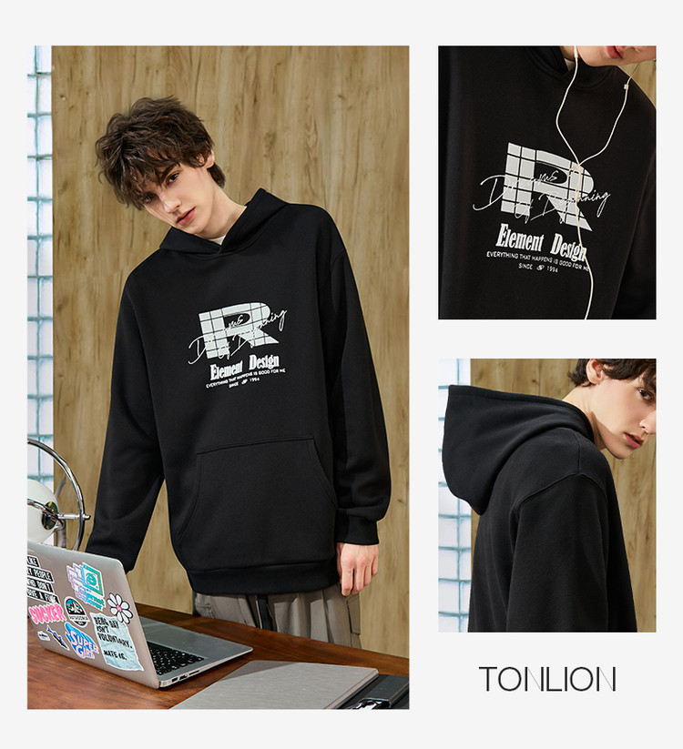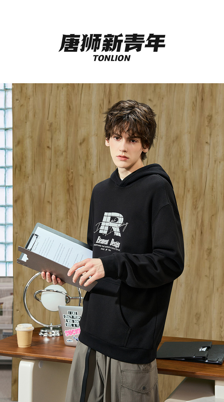 唐狮春季新款男卫衣美式潮牌连帽套头衫青少年百搭外套宽松