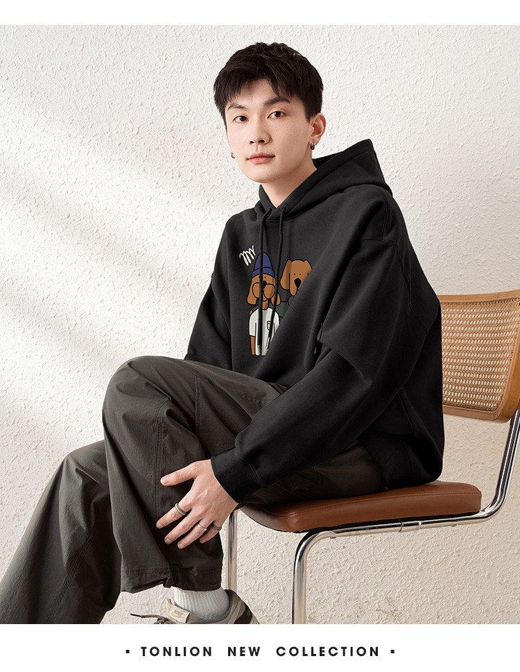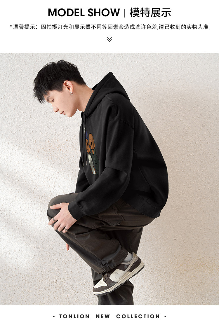 唐狮秋冬新款卫衣男士连帽衫美式青少年外套上衣外套加绒潮流