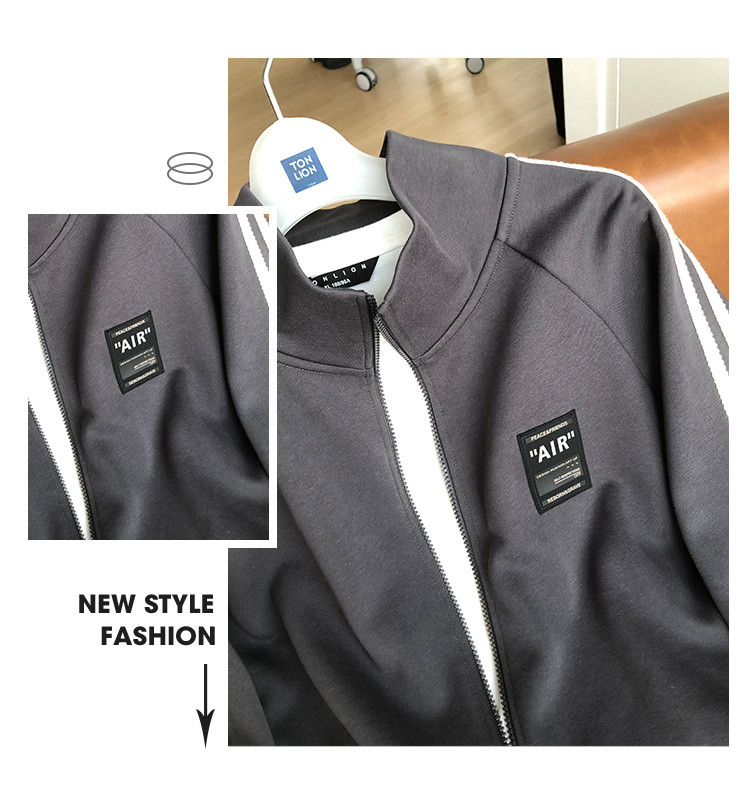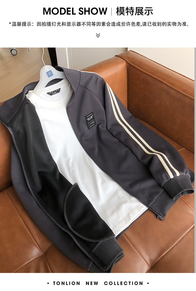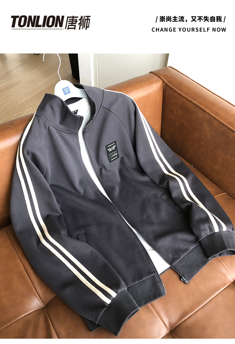 唐狮2025秋季新款男外套条纹拼接运动上衣立领简约宽松夹克百搭潮