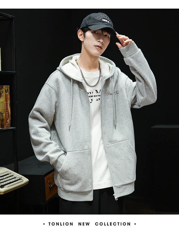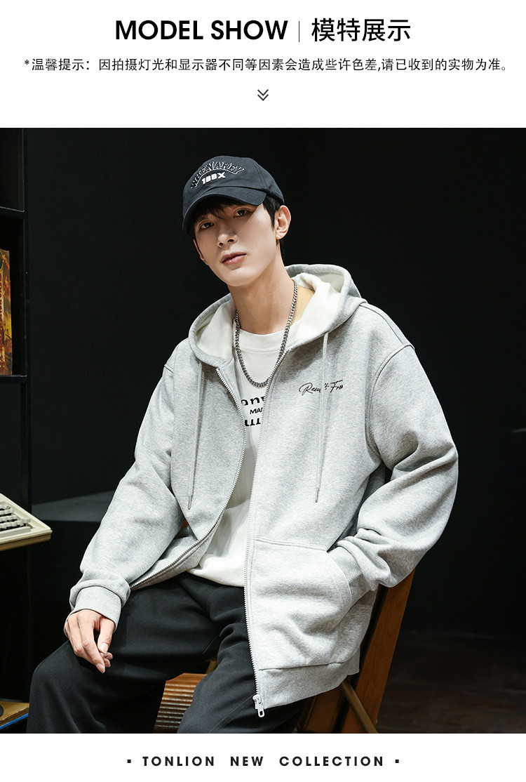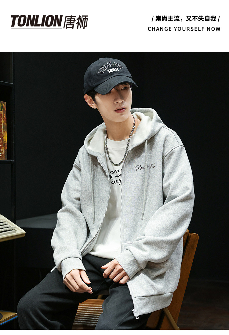 唐狮秋冬新款卫衣男士连帽衫美式青少年外套上衣外套加绒潮流