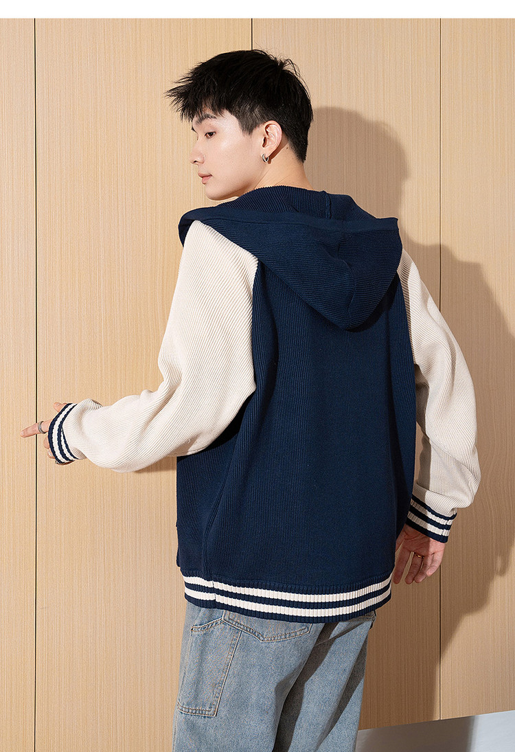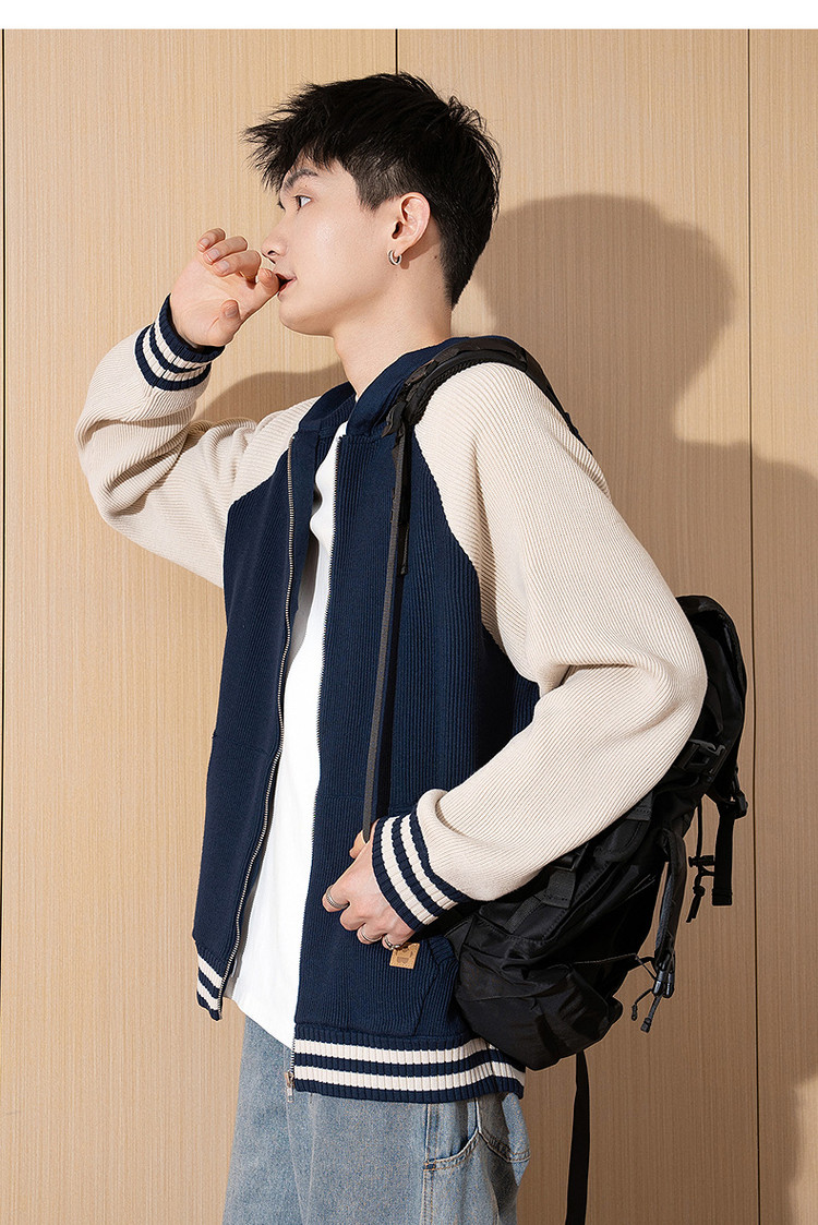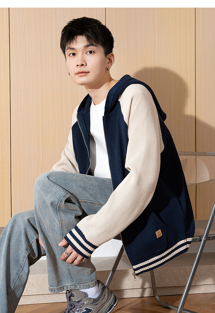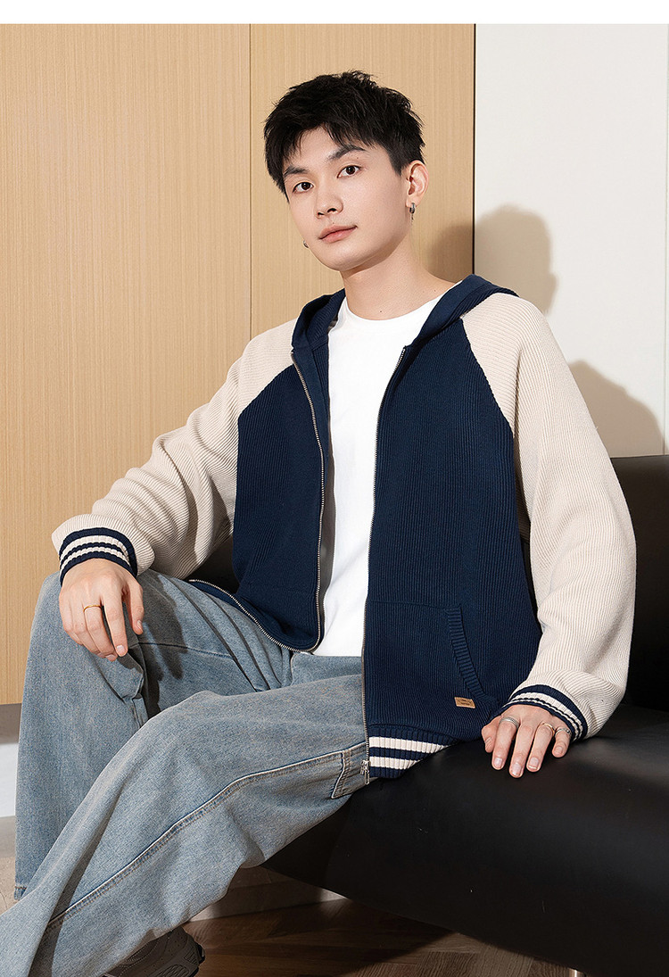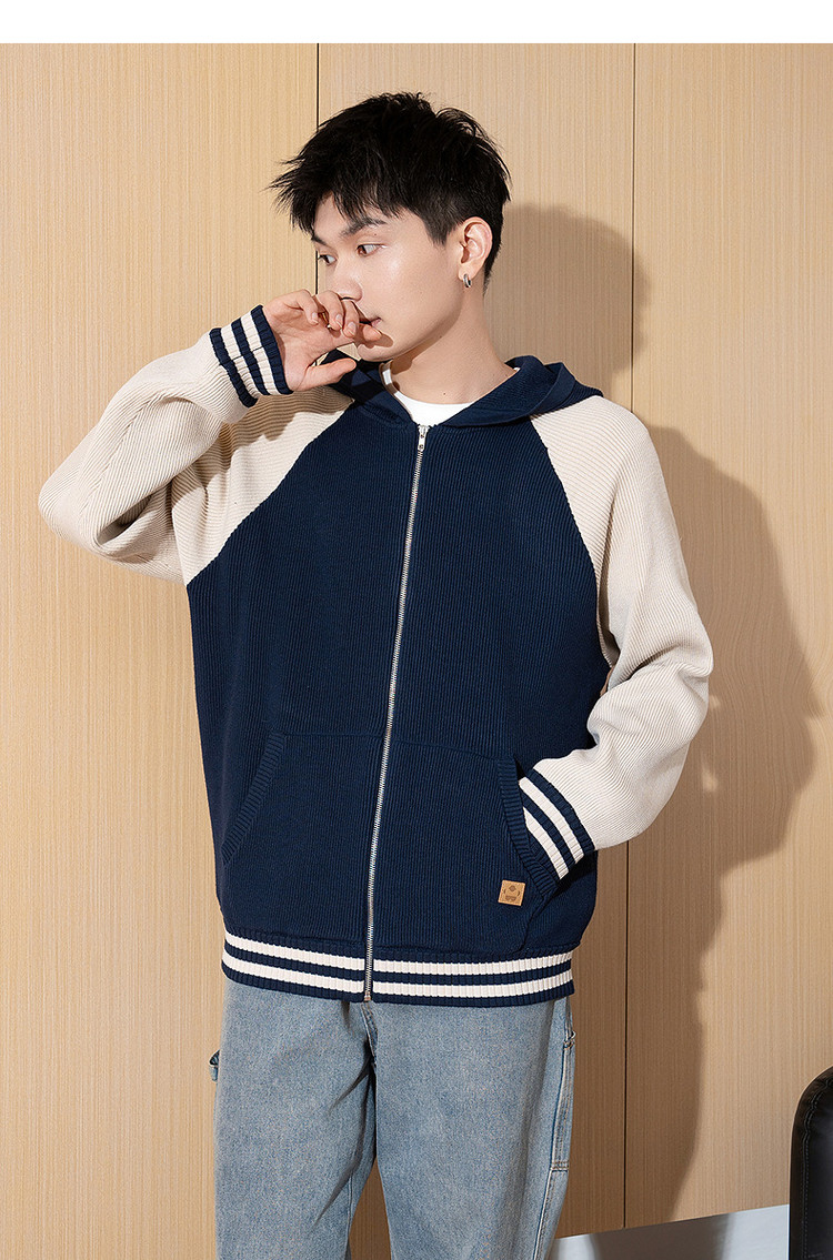 唐狮2025春新款男士毛衣针织开衫外套连帽拉链款港风休闲青少年潮