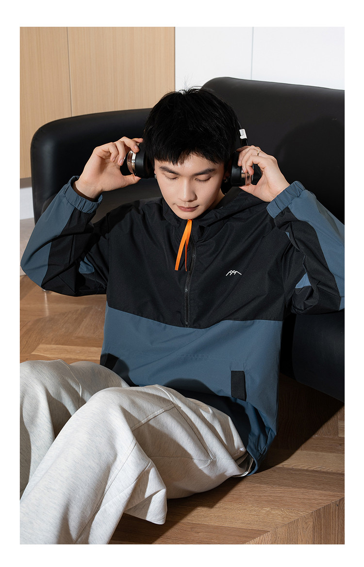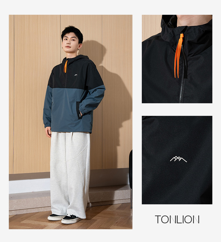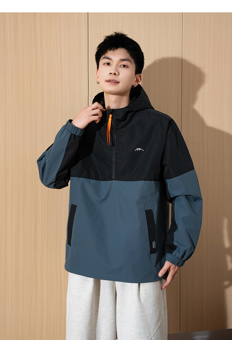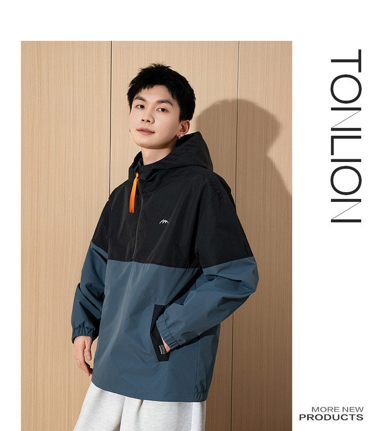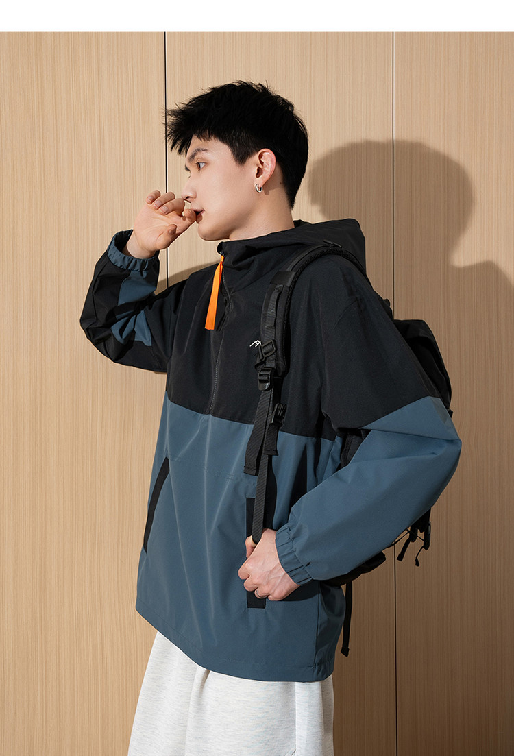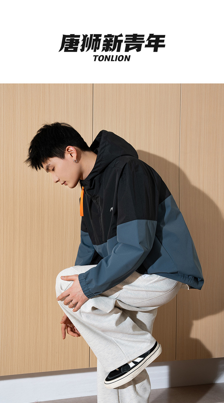 唐狮春新款半开胸外套男拼接连帽工装运动春秋男士夹克潮流