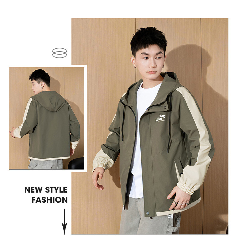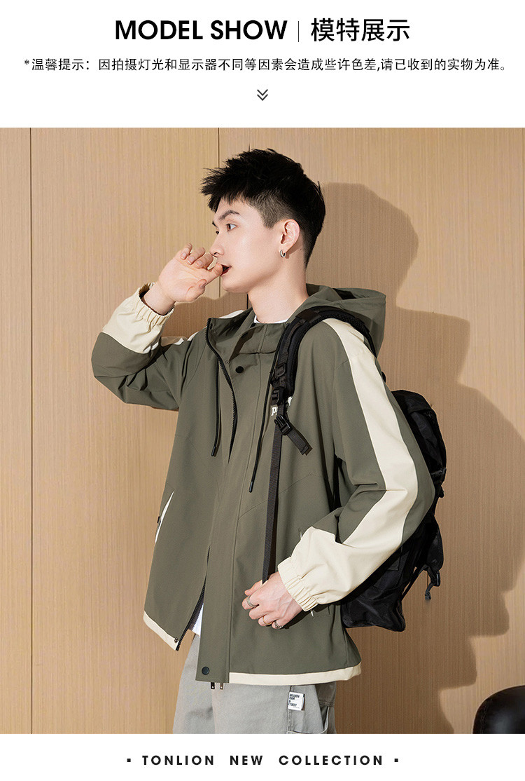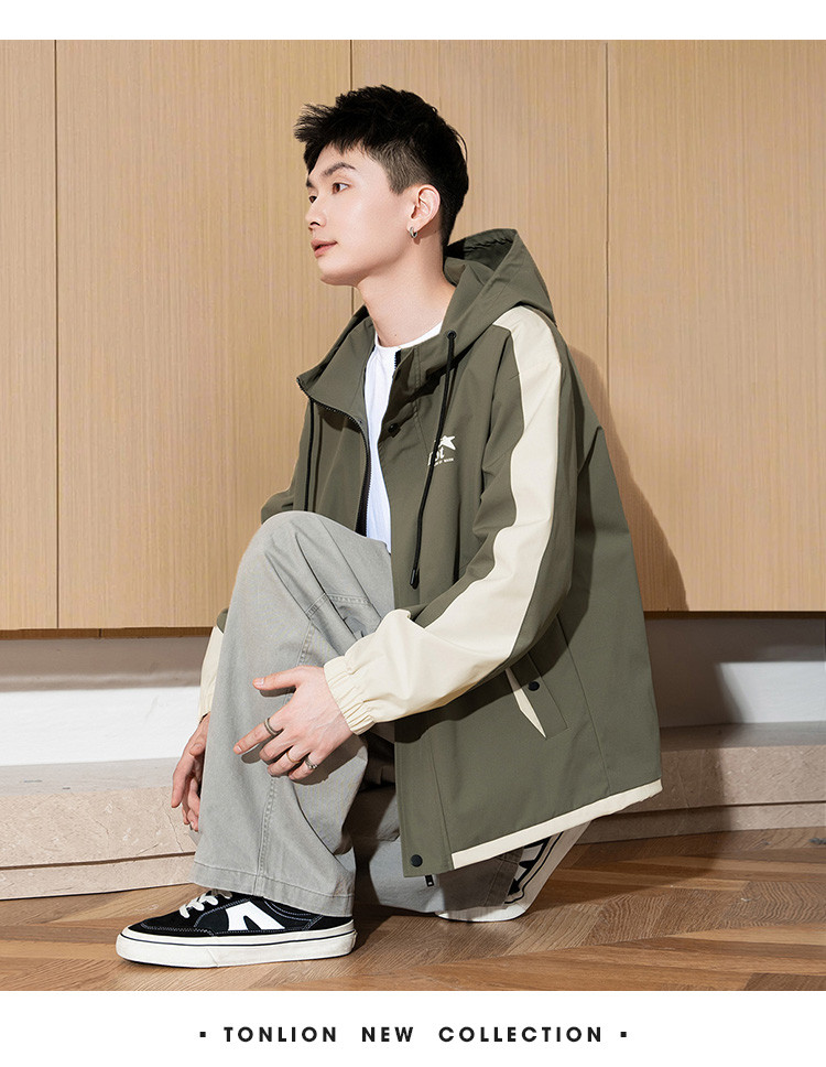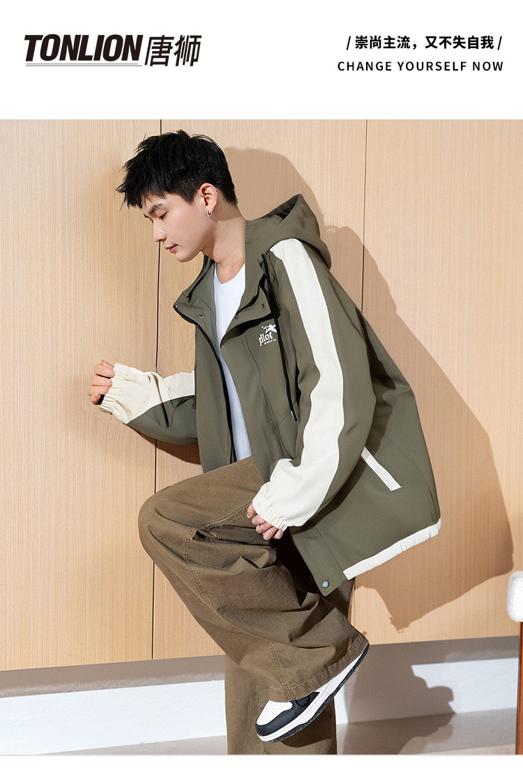 唐狮2026秋季新款男连帽外套拼接撞色工装上衣户外冲锋少年夹克潮