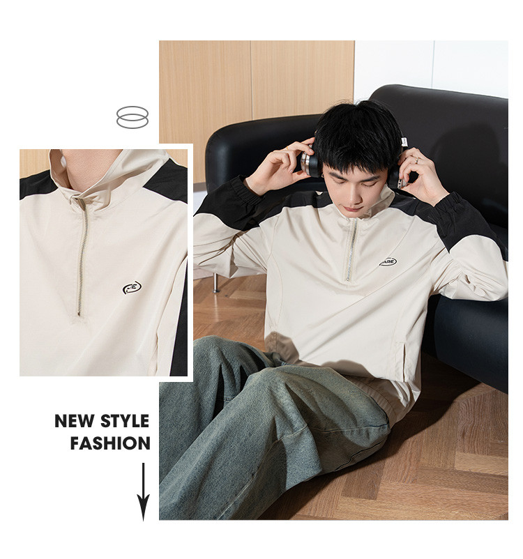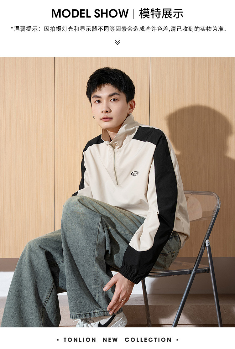 唐狮2025秋季新款男外套立领拉链套头上衣拼接撞色夹克外套运动
