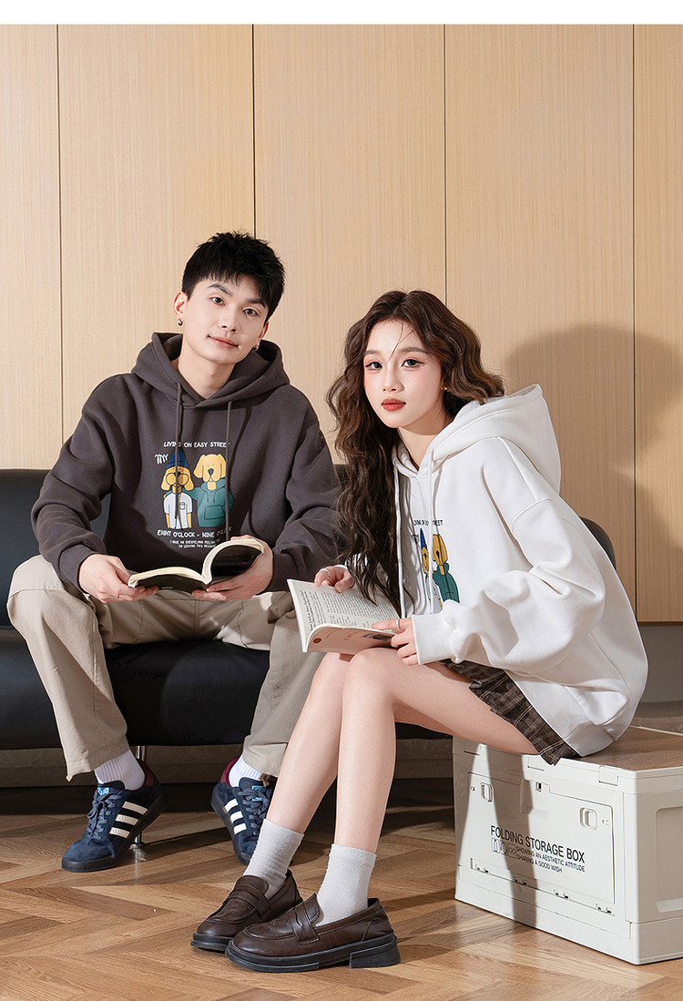 唐狮秋冬新款情侣卫衣外套保暖青少年宽松上衣连帽衫好看百搭