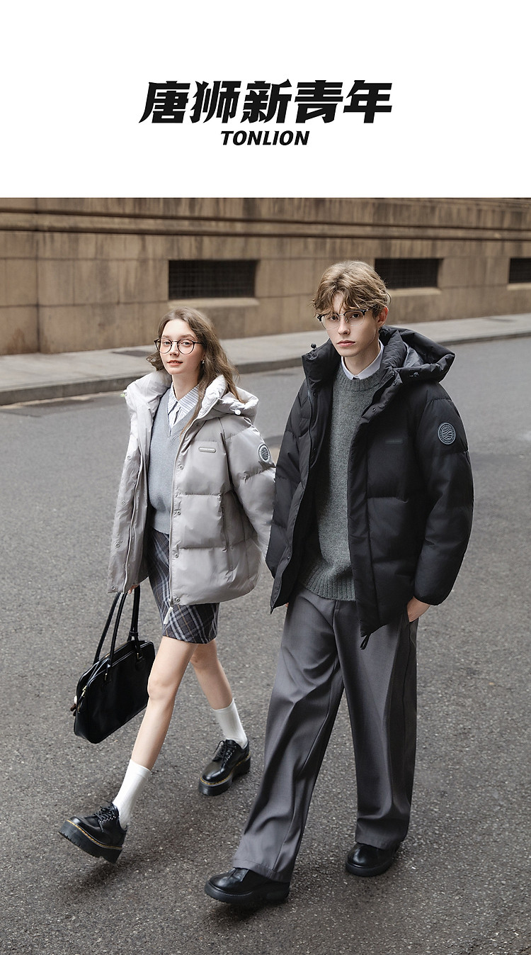 唐狮冬季新款情侣羽绒服男女装连帽面包服加厚学生百搭短款外套潮