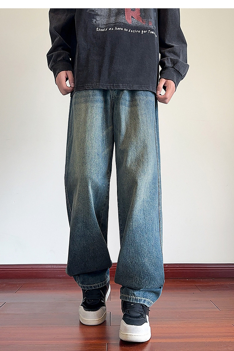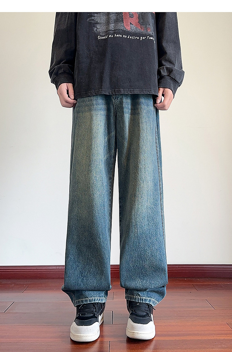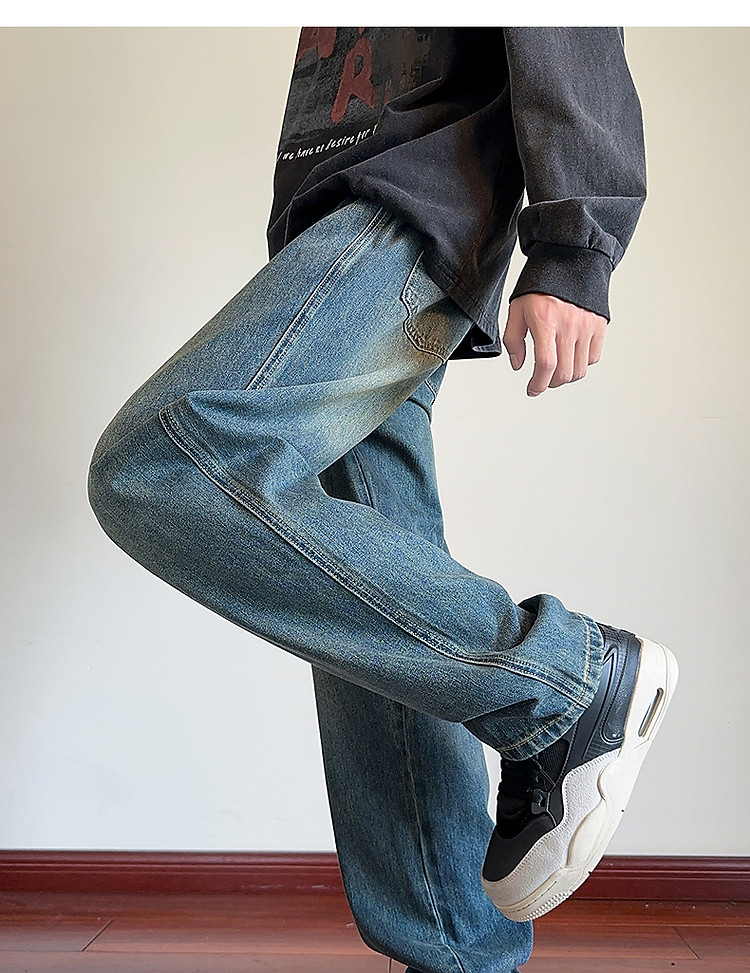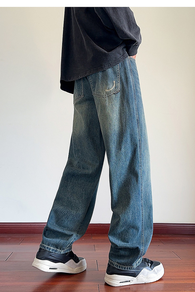 唐狮2026男款牛仔裤宽松长裤绣花设计感美式复古高街长裤子潮流