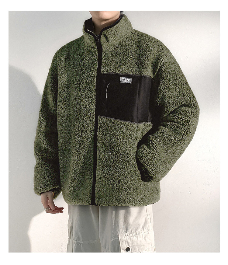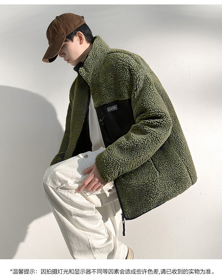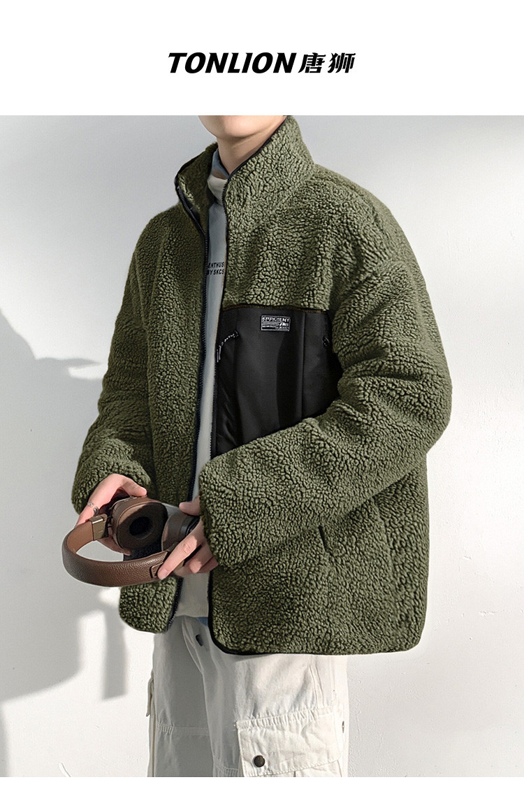 唐狮2026秋冬季新款仿羊羔毛外套男拼接短款立领宽松加厚保暖夹克