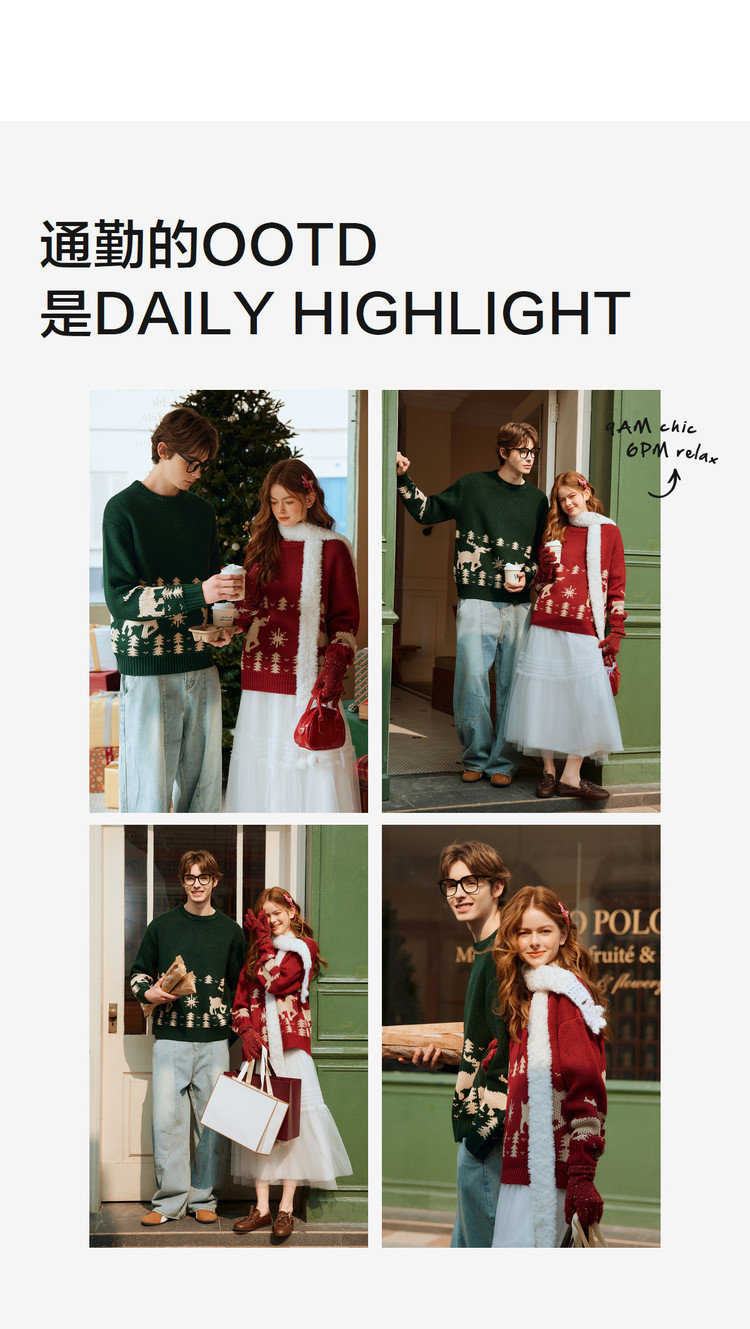 唐狮2026秋冬毛衣情侣款圆领套头费尔岛提花节日氛围毛线衫超好看
