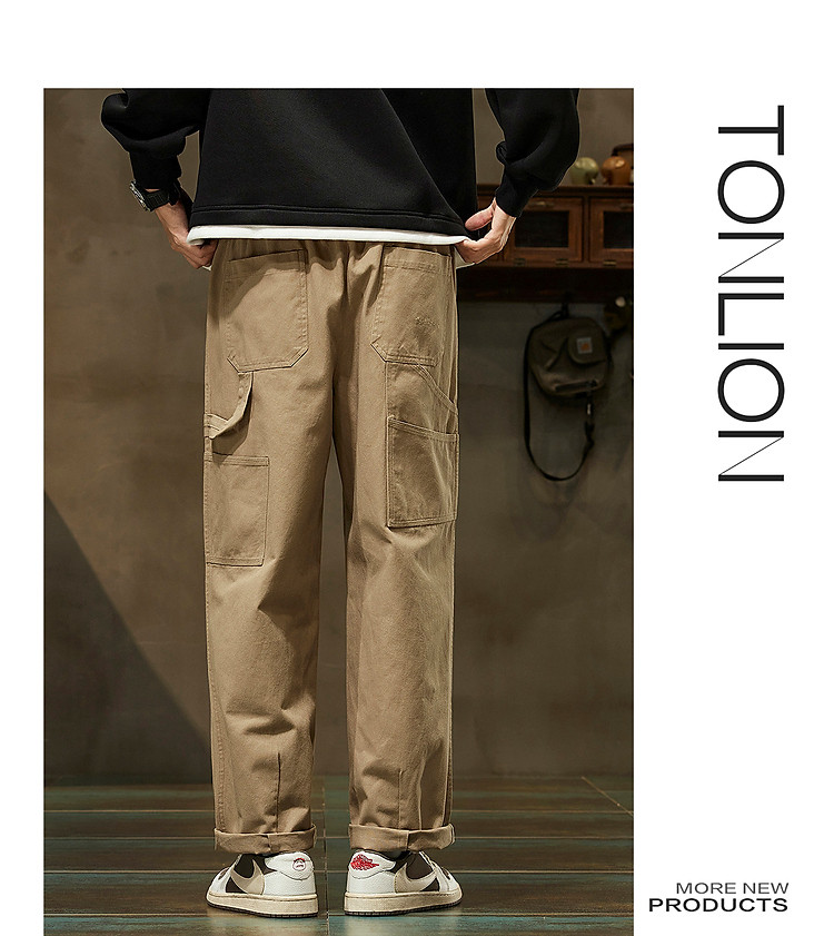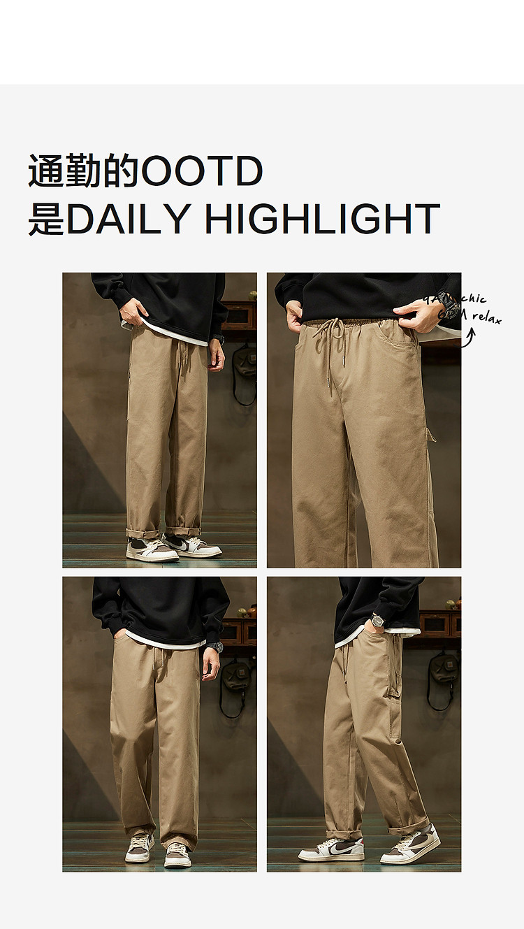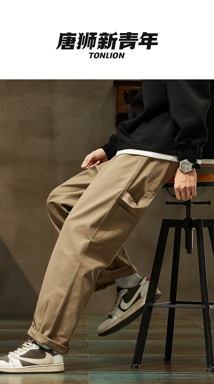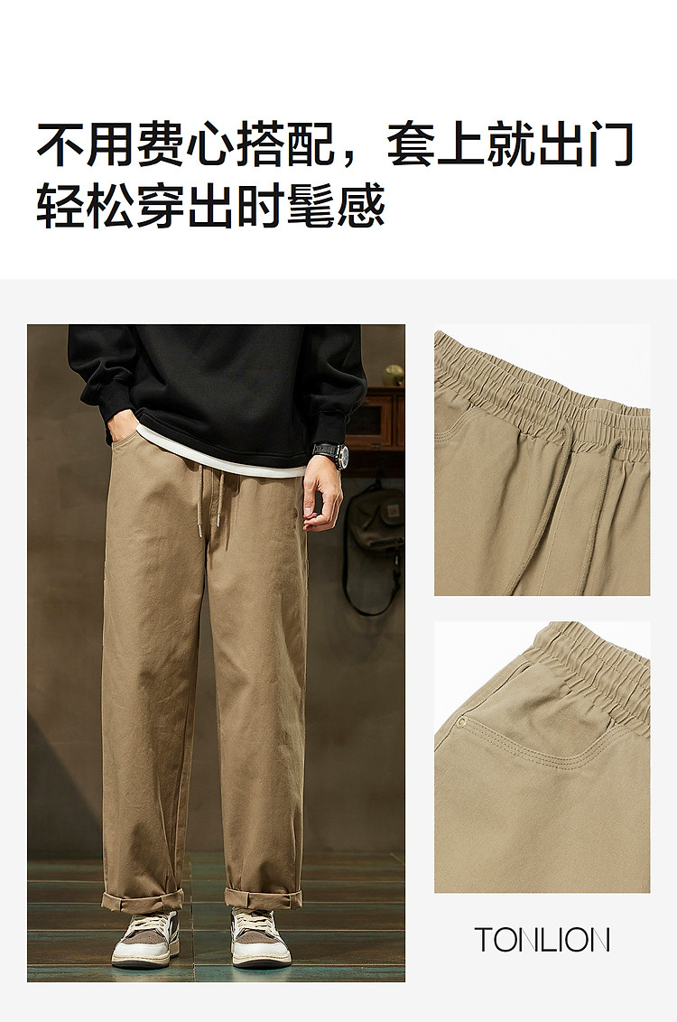 唐狮2026秋冬休闲长裤男卡其色小脚裤基本直筒时尚休闲日系风穿搭