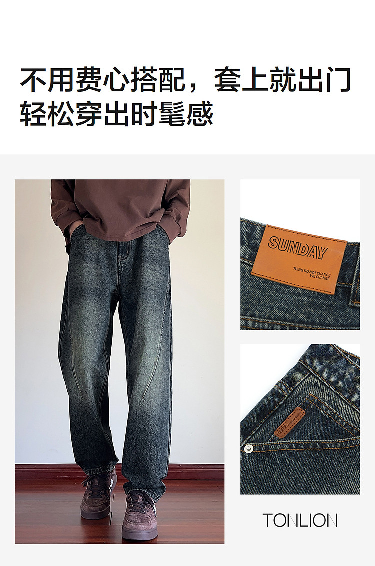 唐狮2026秋季牛仔长裤男宽松直筒美式复古休闲风长裤潮流百搭男裤