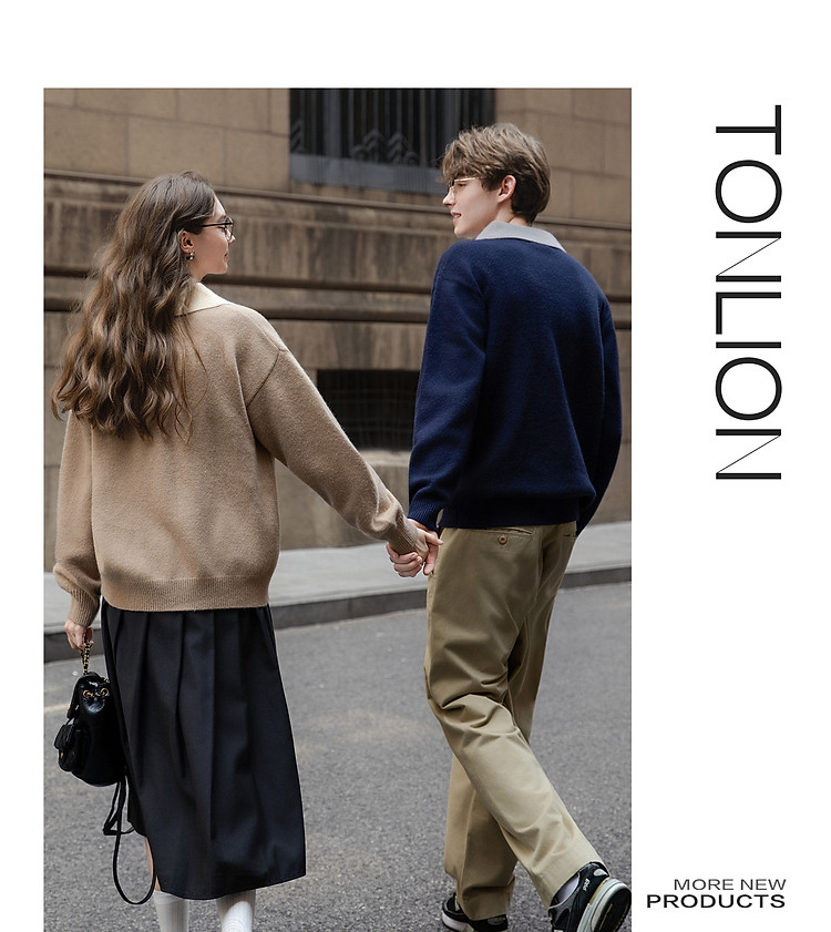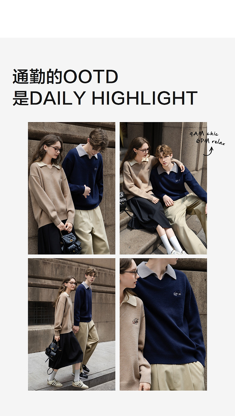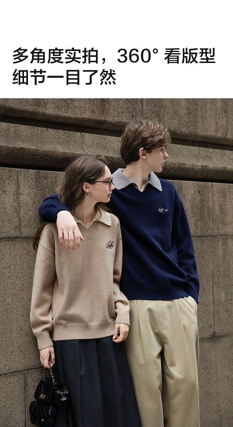 【史努比联名款】唐狮2026秋冬季情侣款假两件左胸绣花翻领毛线衫